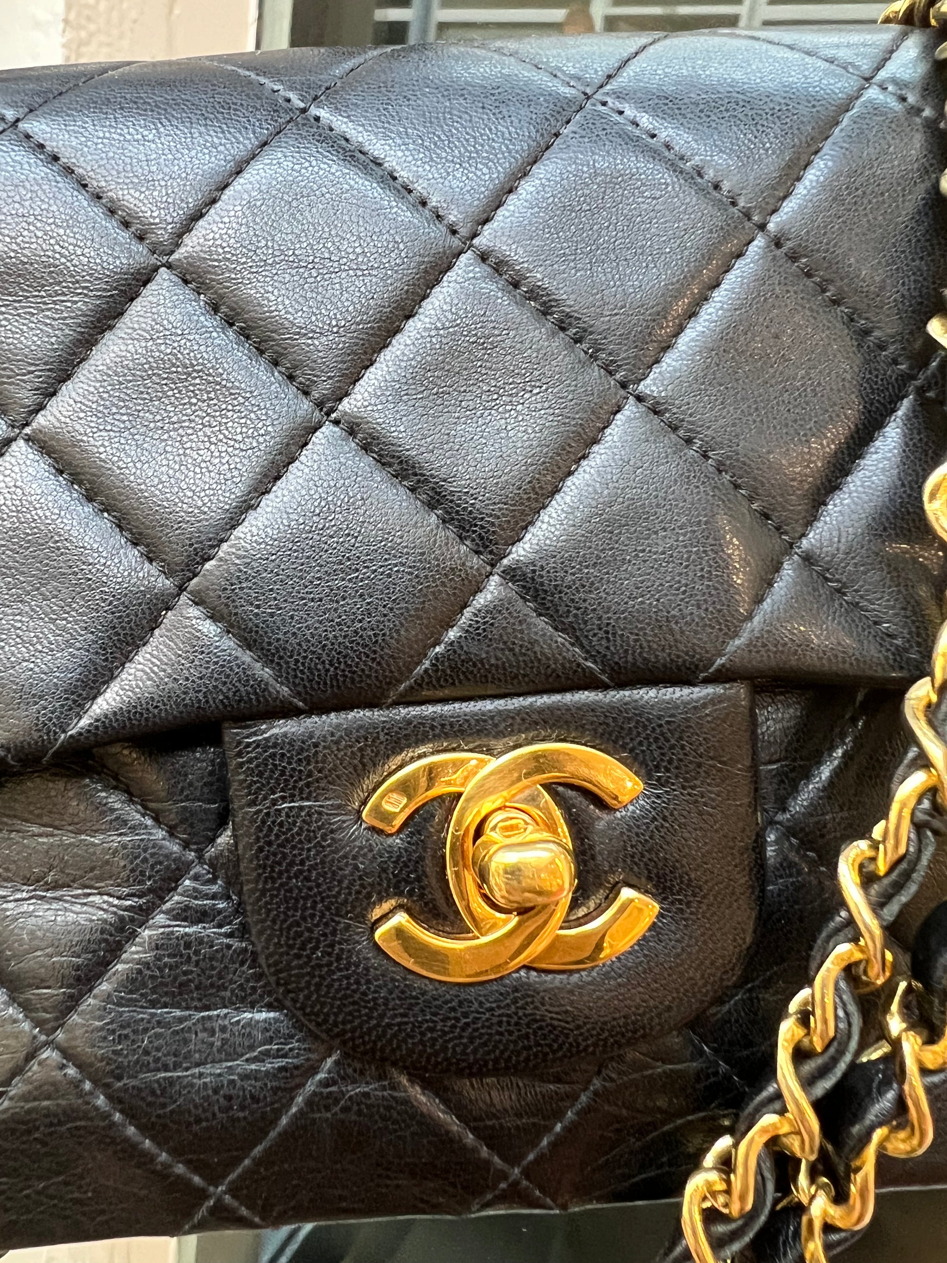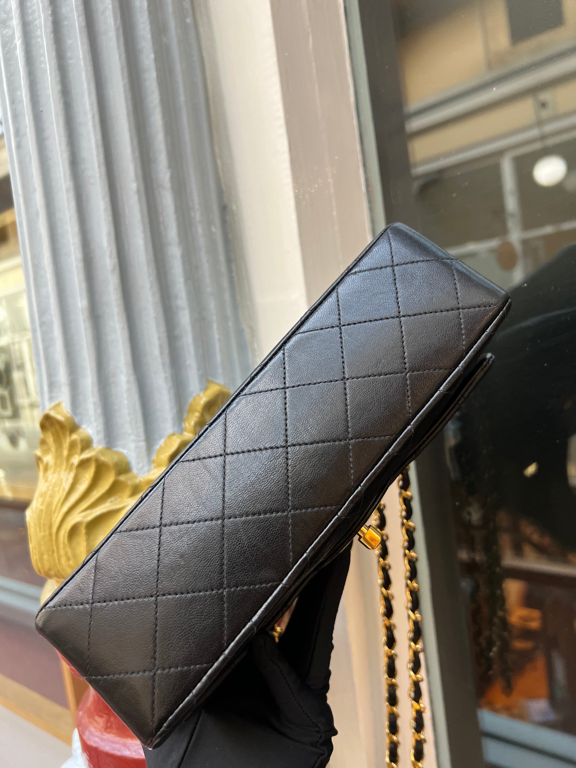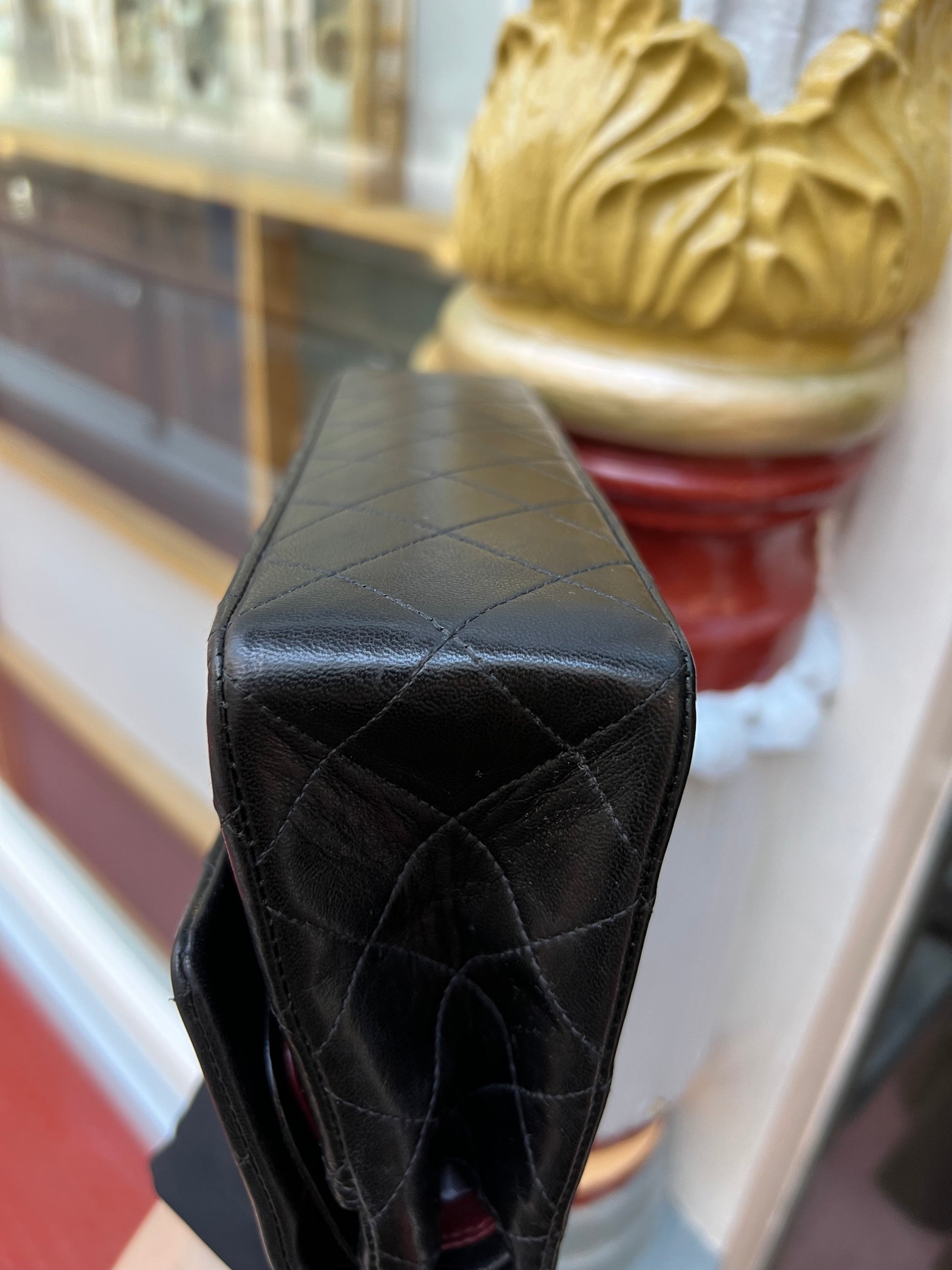 Pre-loved Chanel Vintage Classic Double Flat Leather crossbody Bag 23cm Black