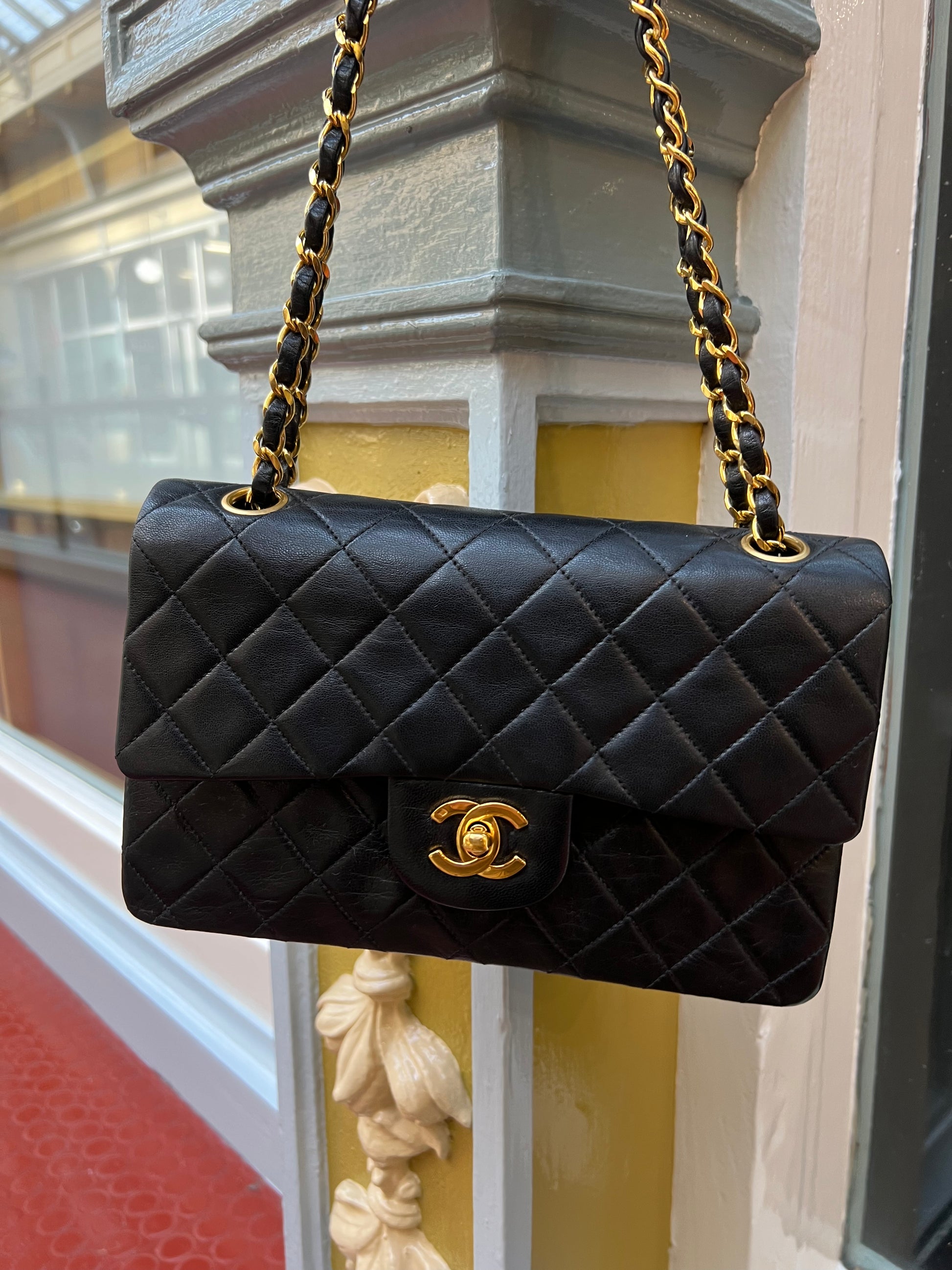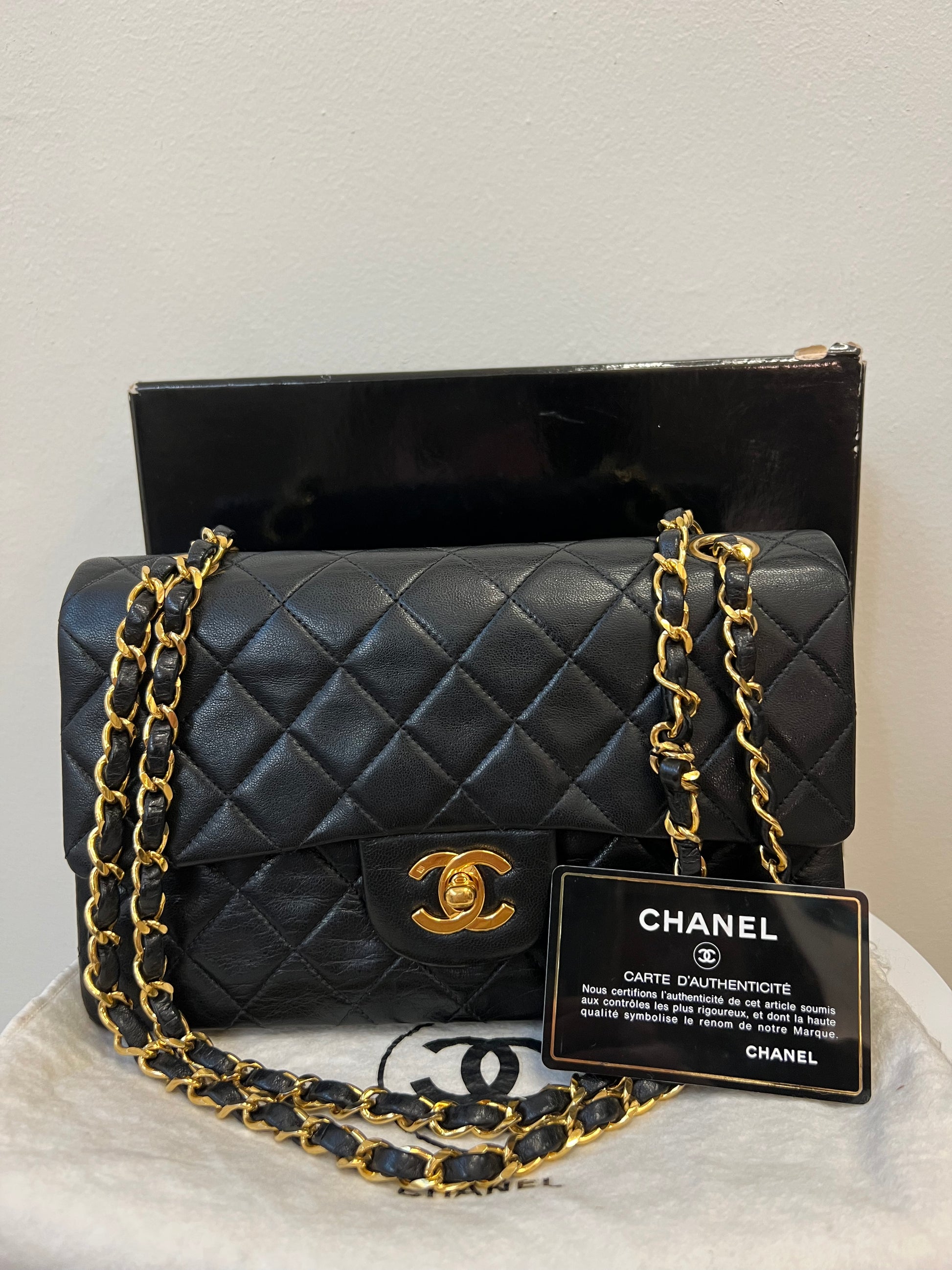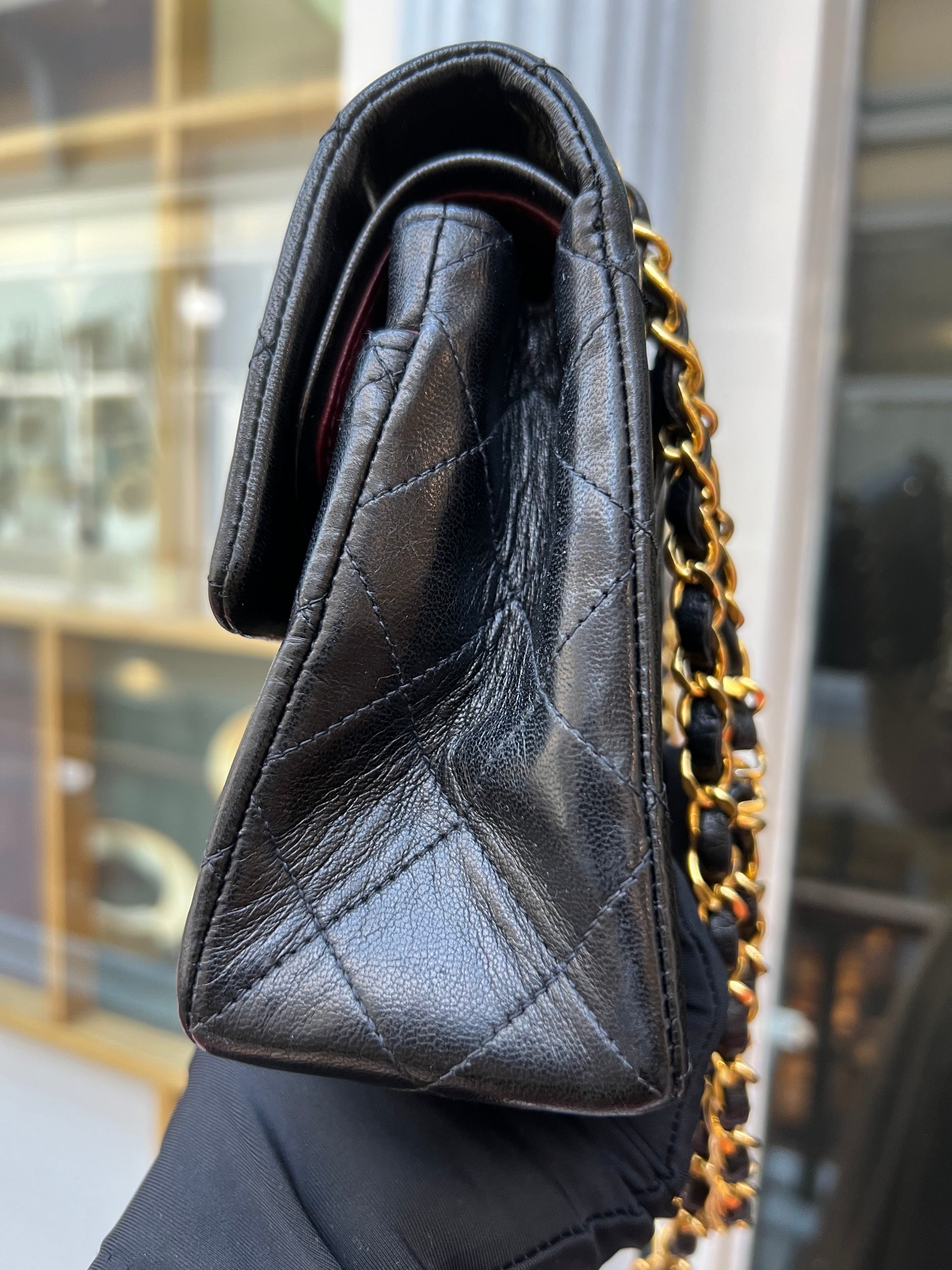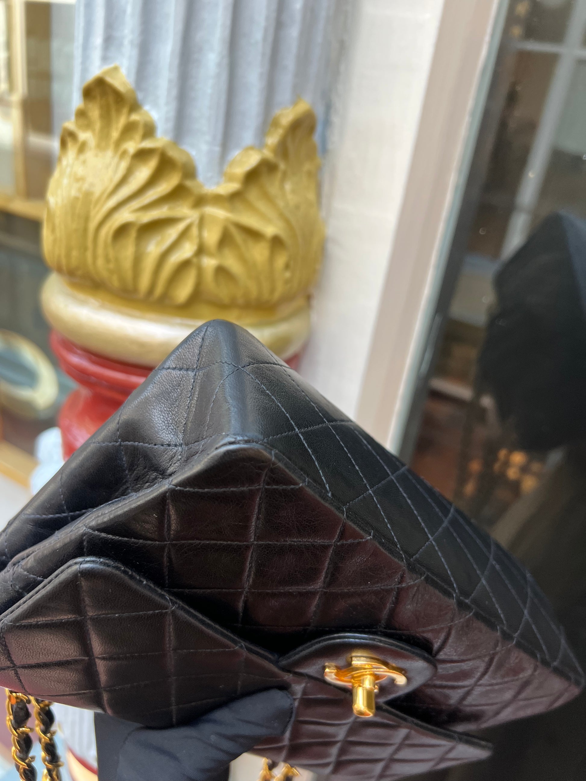 Pre-loved Chanel Vintage Classic Double Flat Leather crossbody Bag 23cm Black