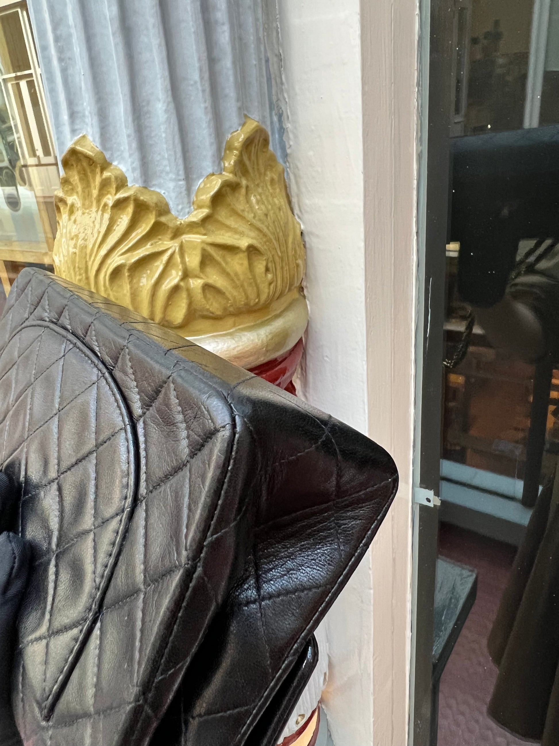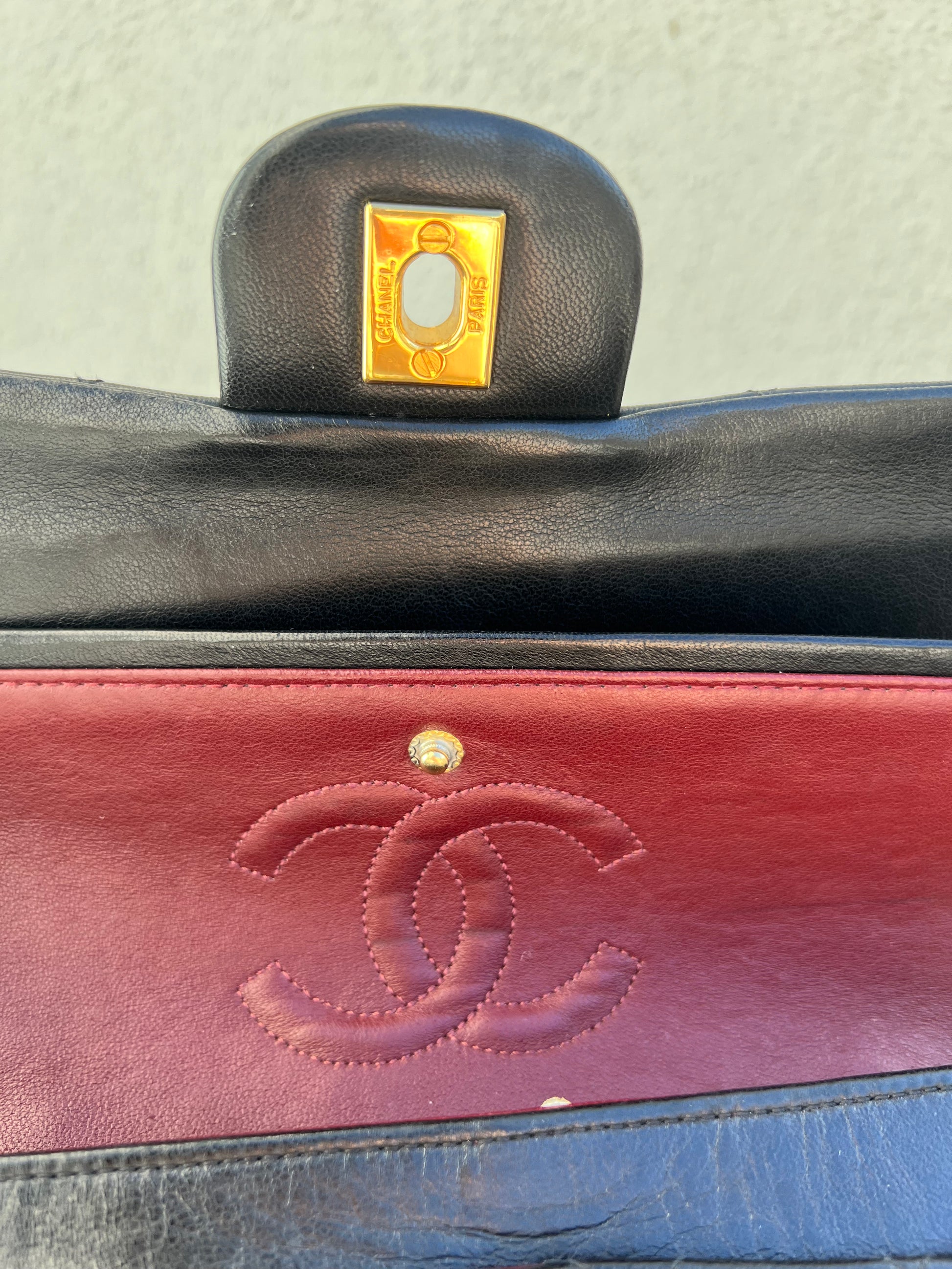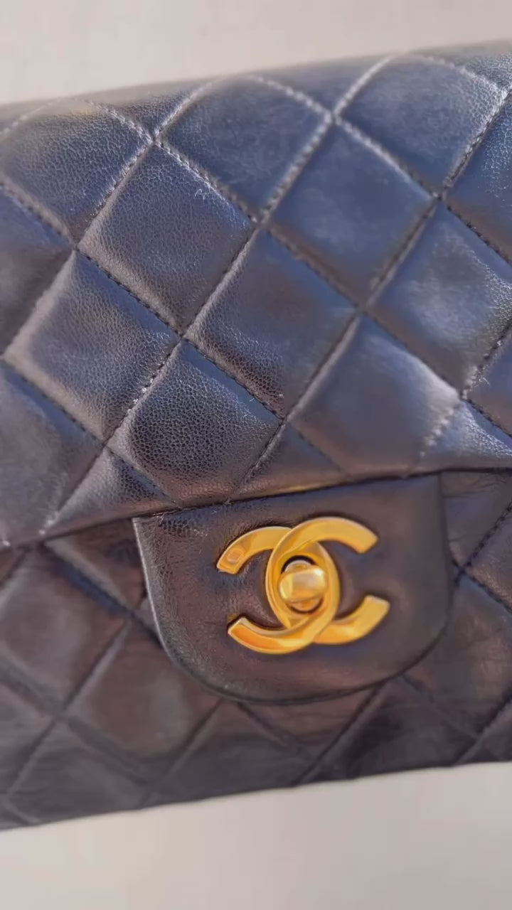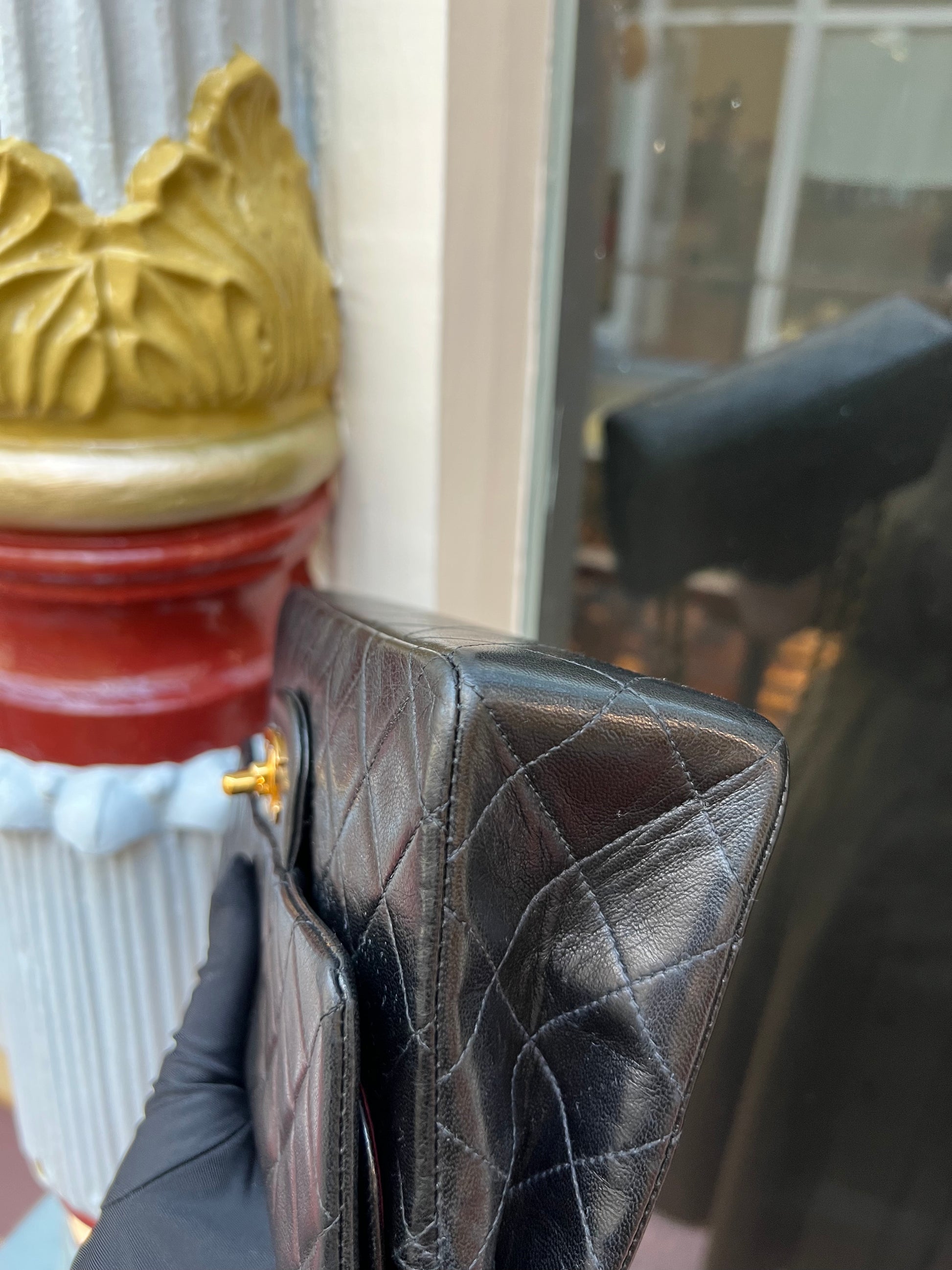 Very good vintage condition Black sheepskin, 24K gold -plated hardware, slightly usage signs overall that may not even be seen at first e. But if you really look , you can find them because it froms 90s . Rare orginal excellent vintage condition, which has no any bag spa , not be painted or retouched.