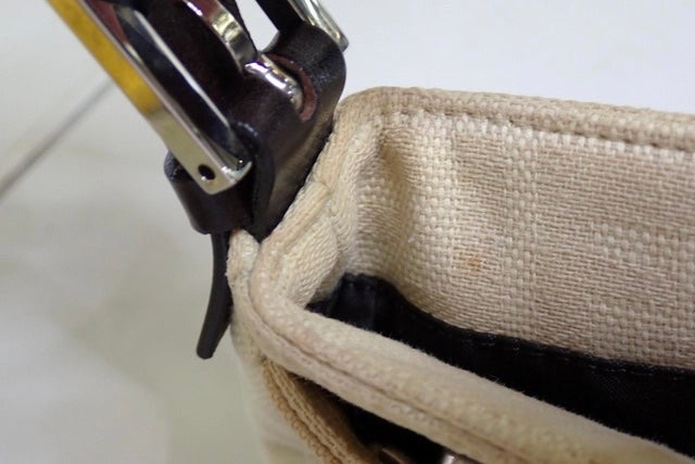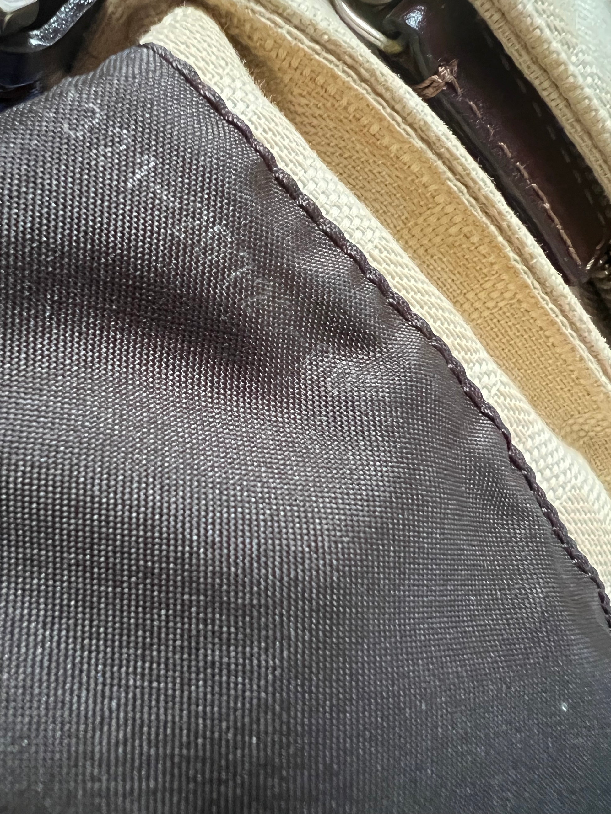 Mild stains on the fabric. Shoulder strap has slight shape lose due to long term hanging storage.