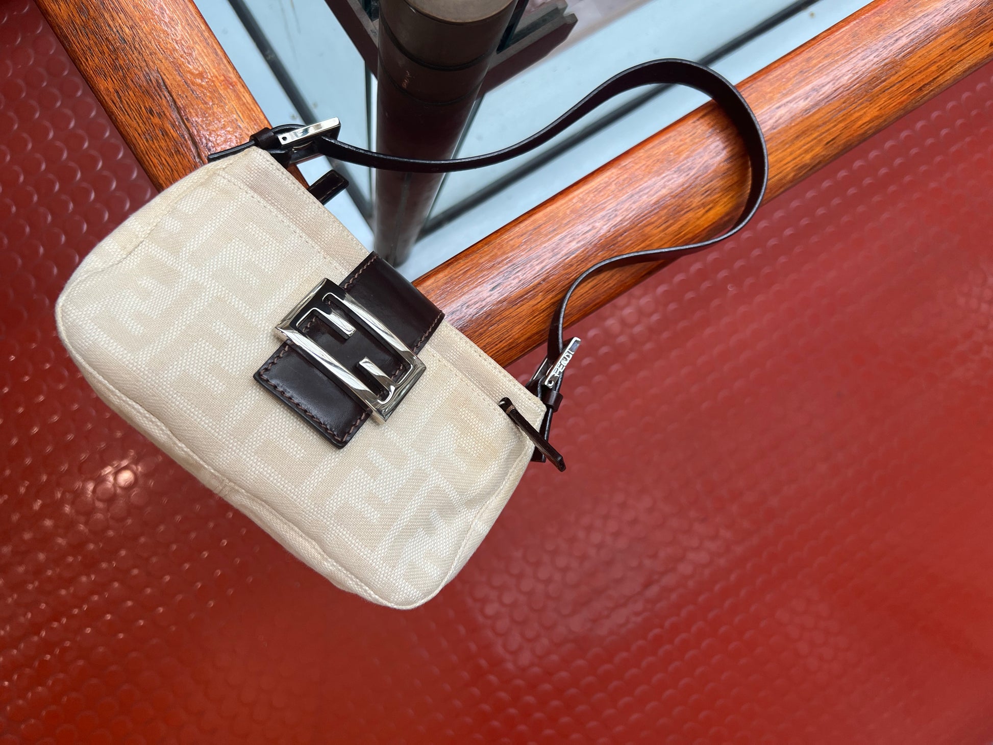 Pre-loved Fendi Zucca Mini Baguette Handbag