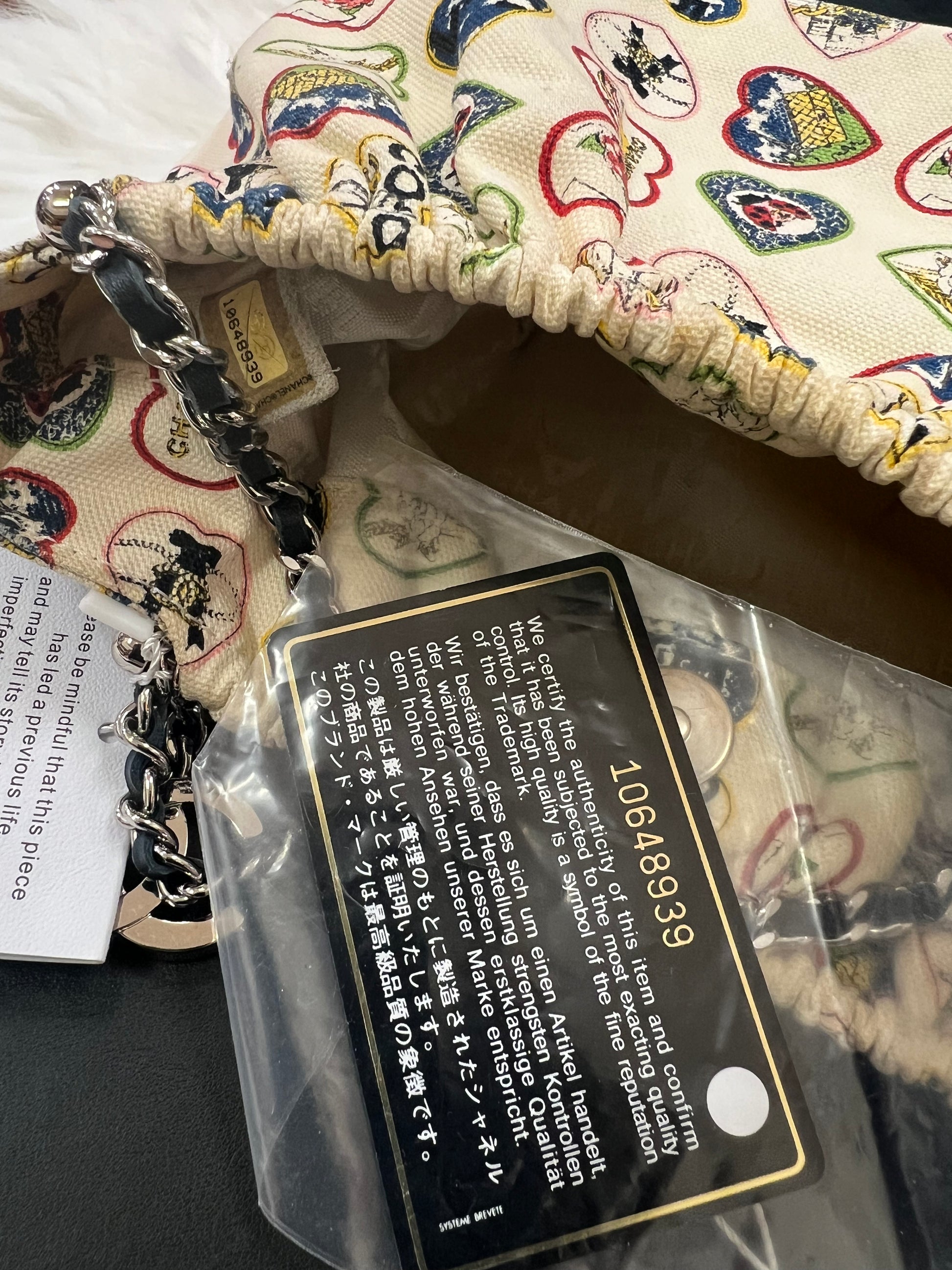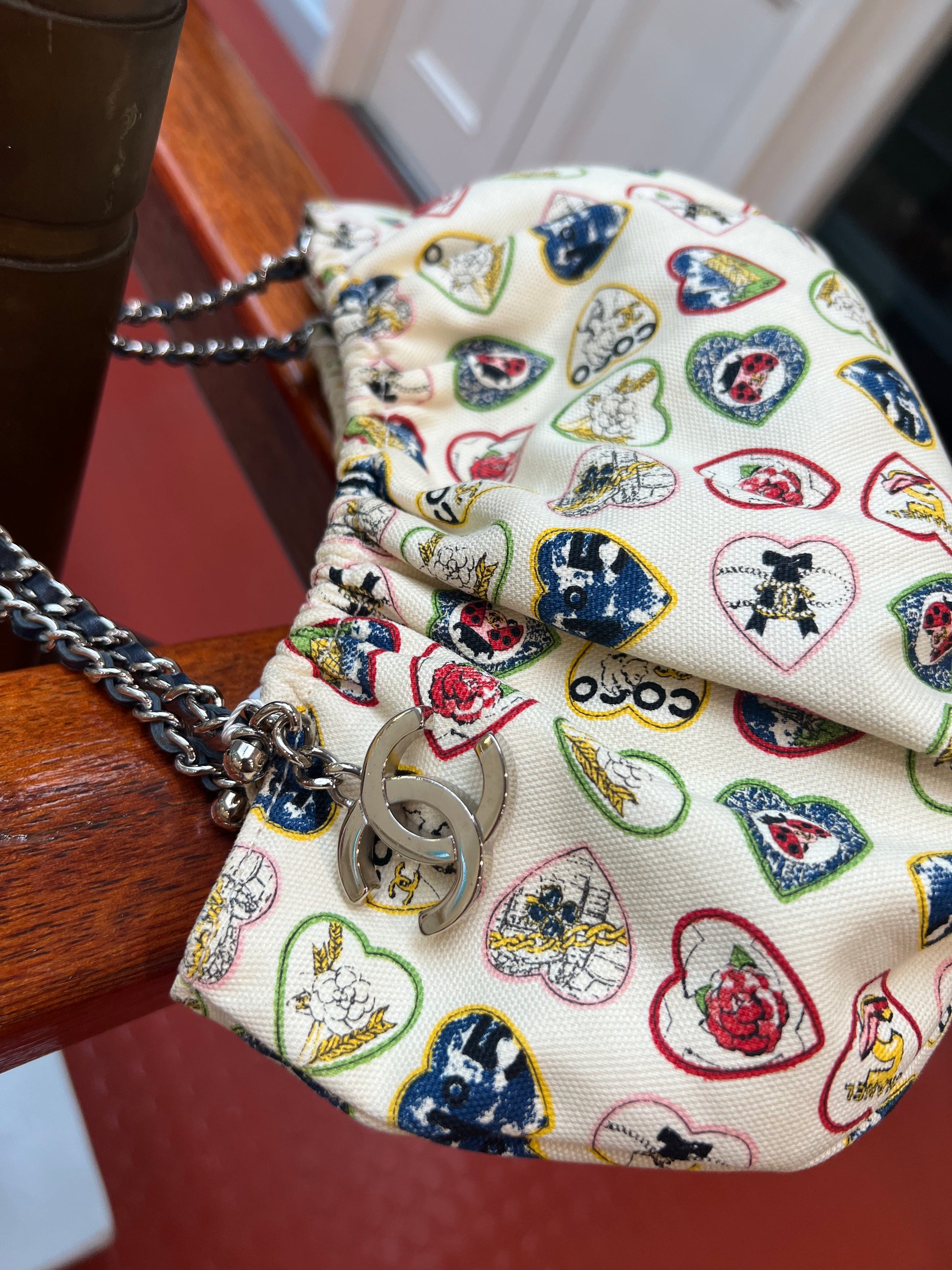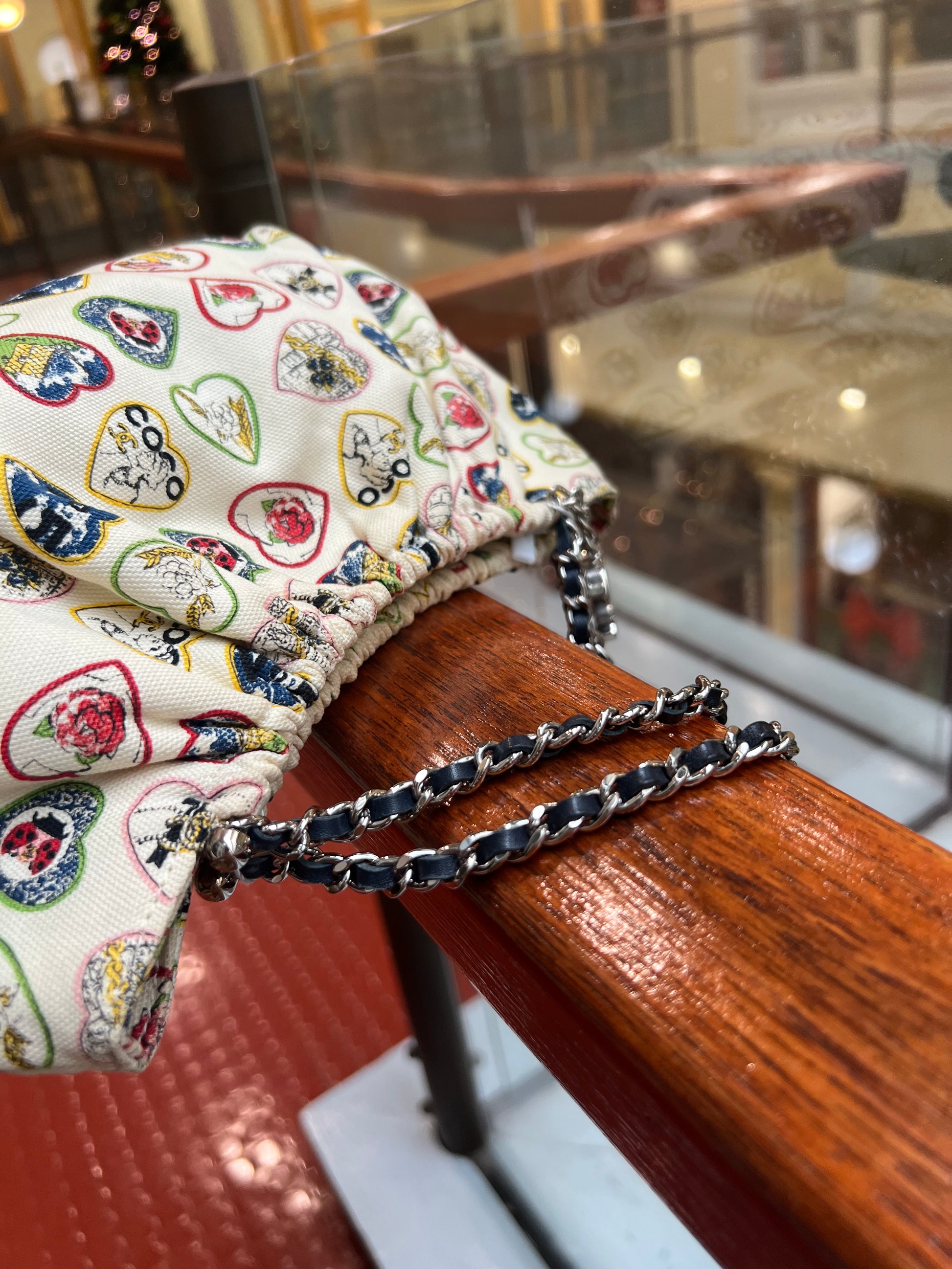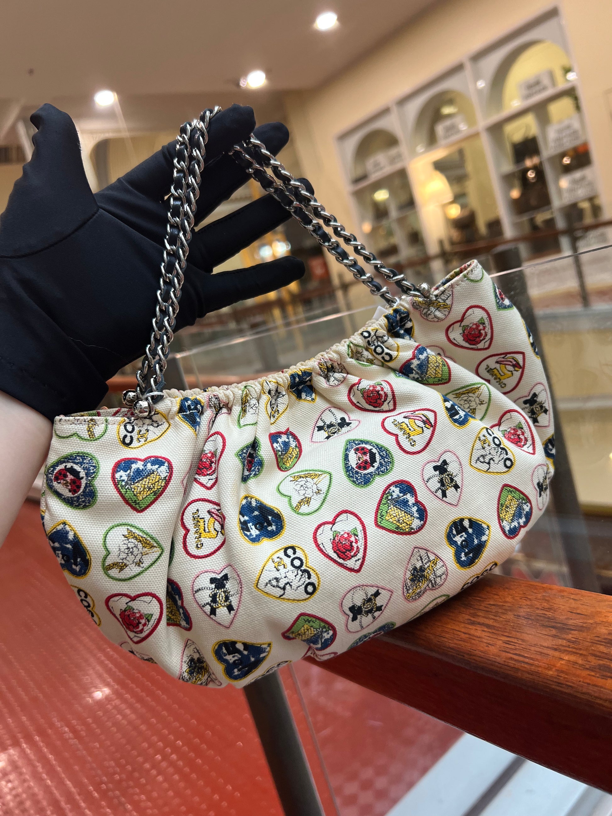 CHANEL 2006 IVORY CANVAS VALENTINE CHAIN HANDBAG