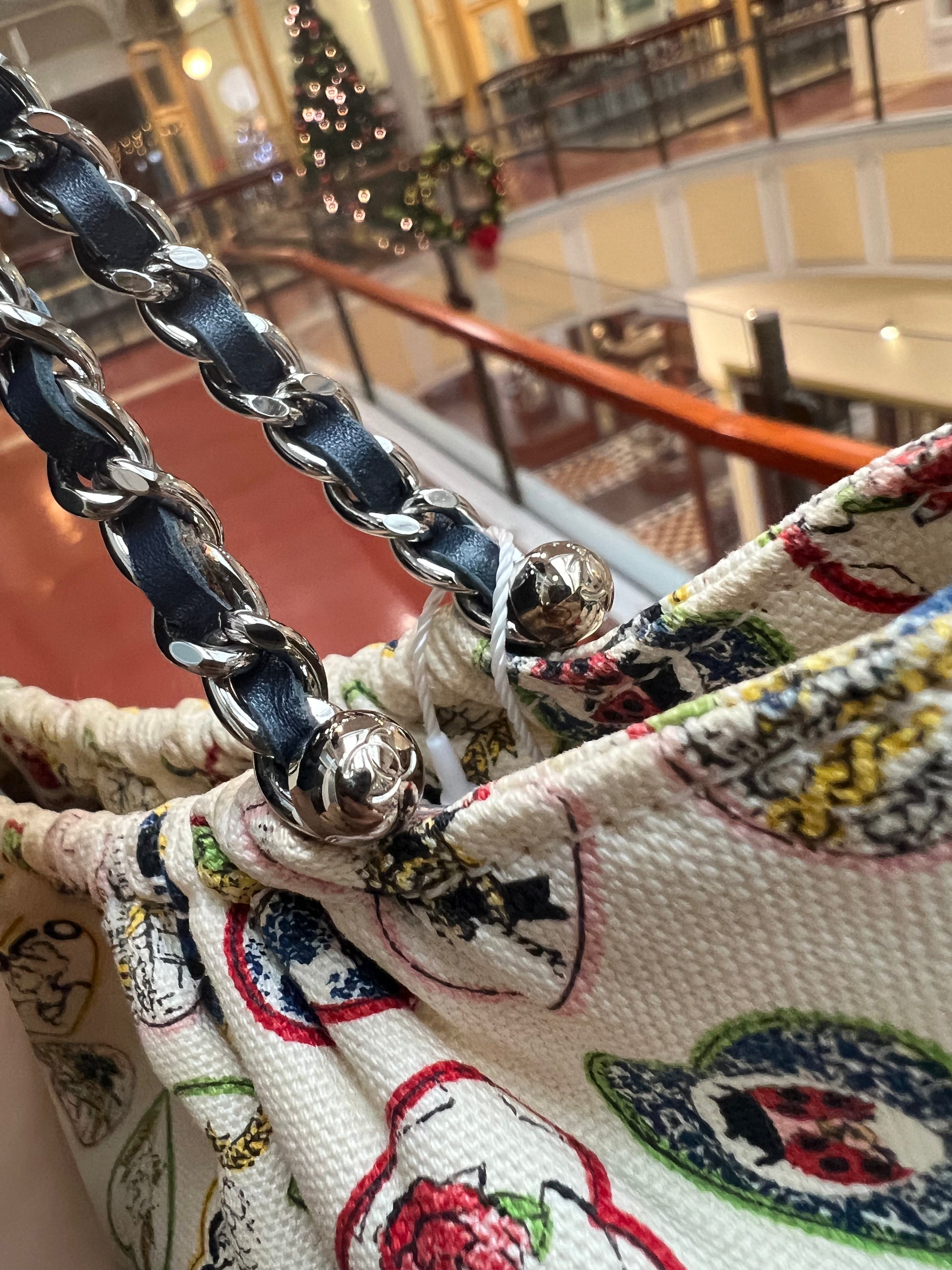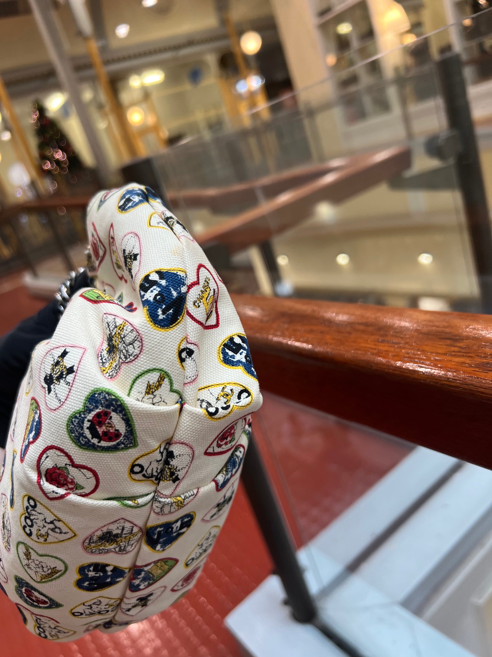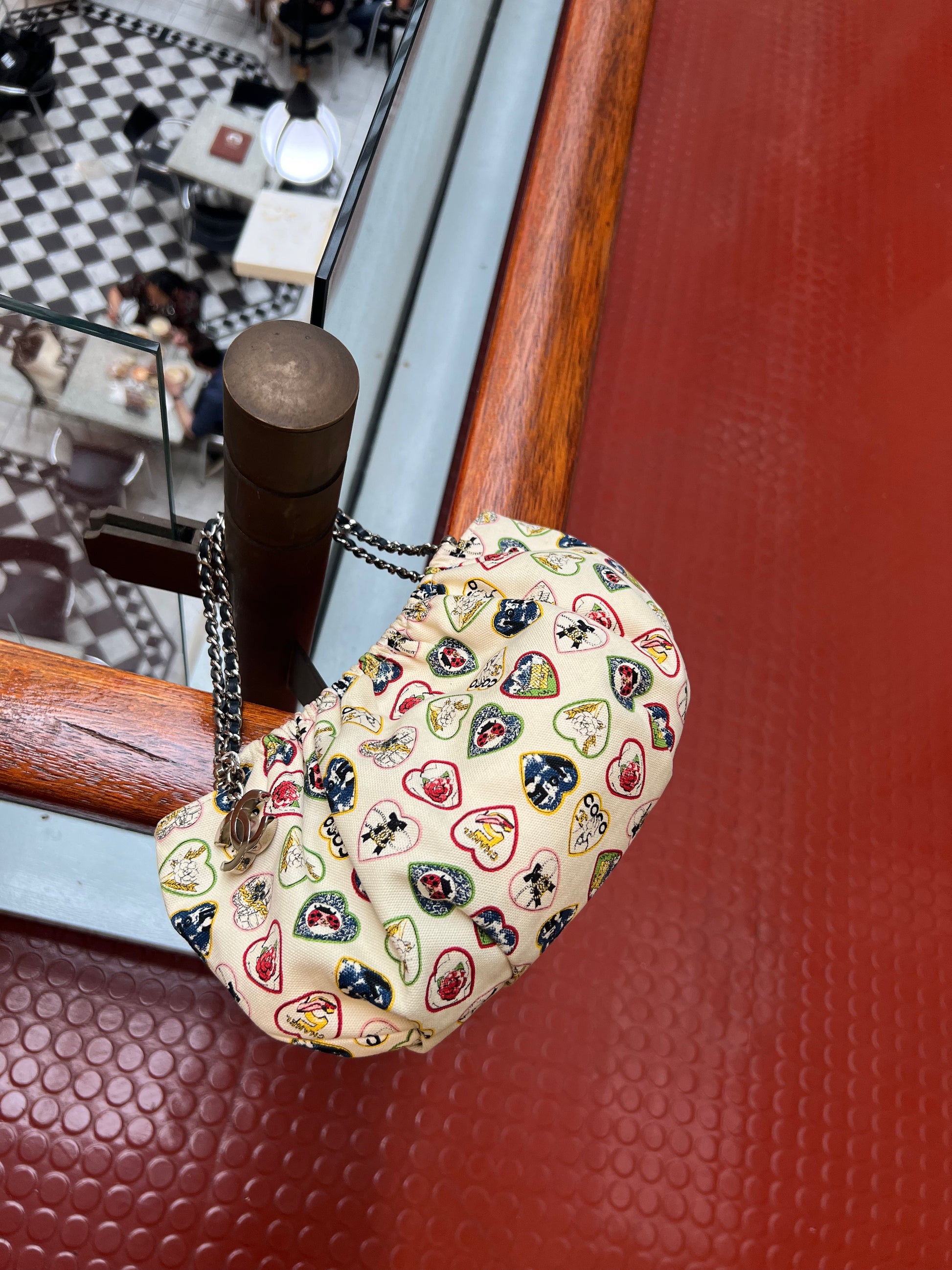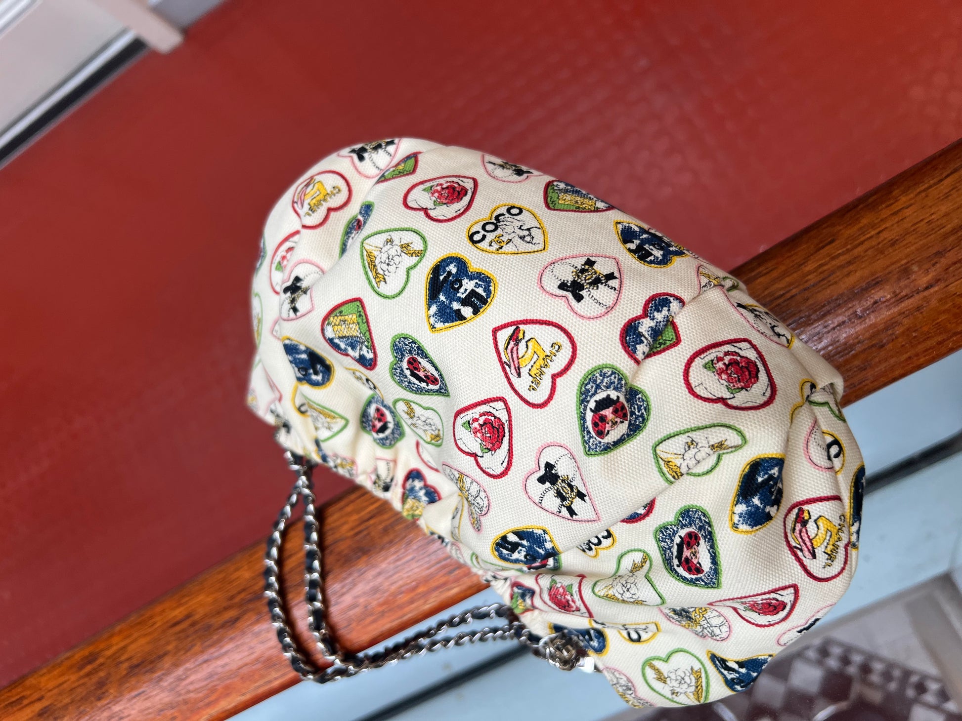 CHANEL 2006 IVORY CANVAS VALENTINE CHAIN HANDBAG