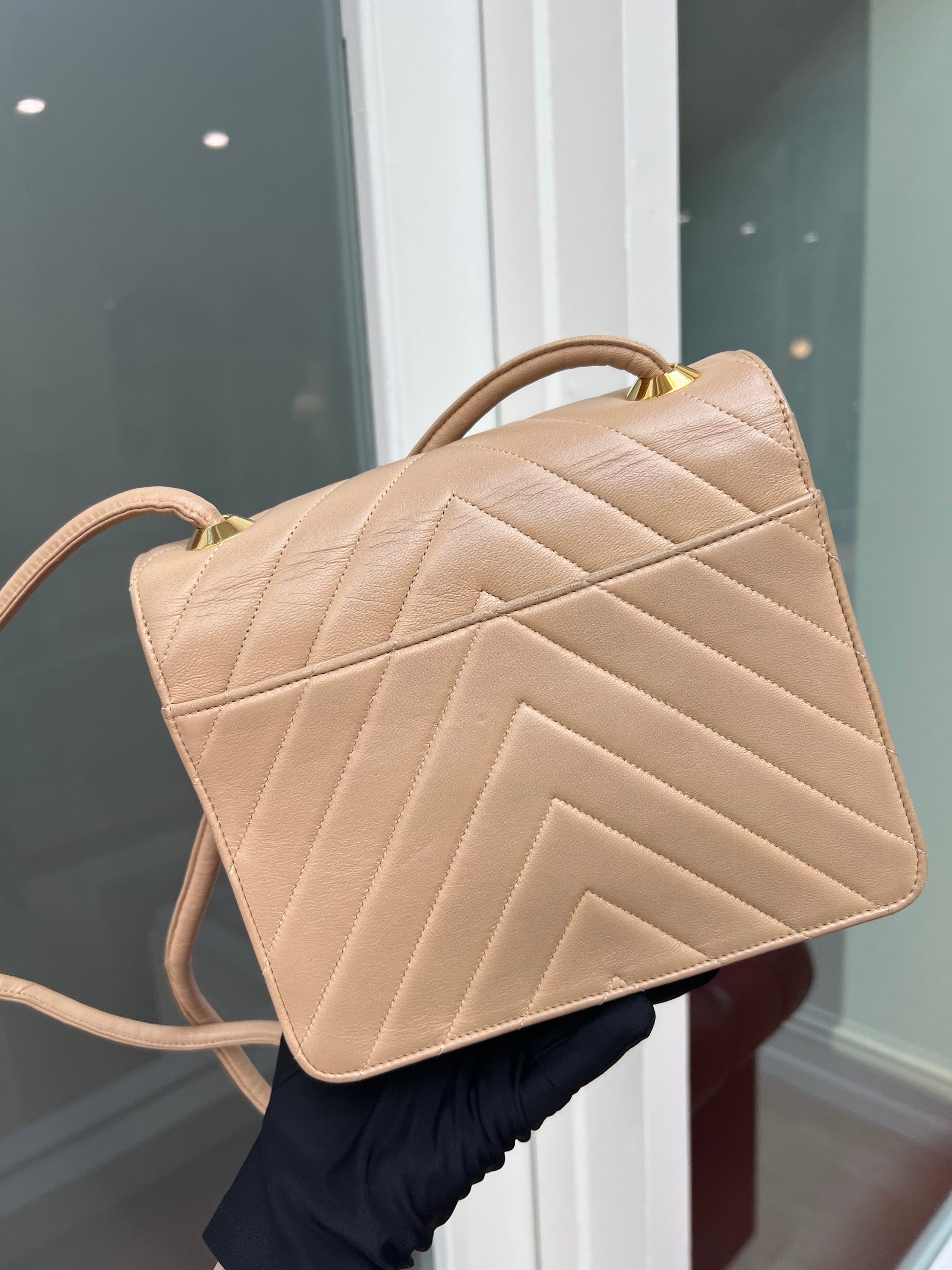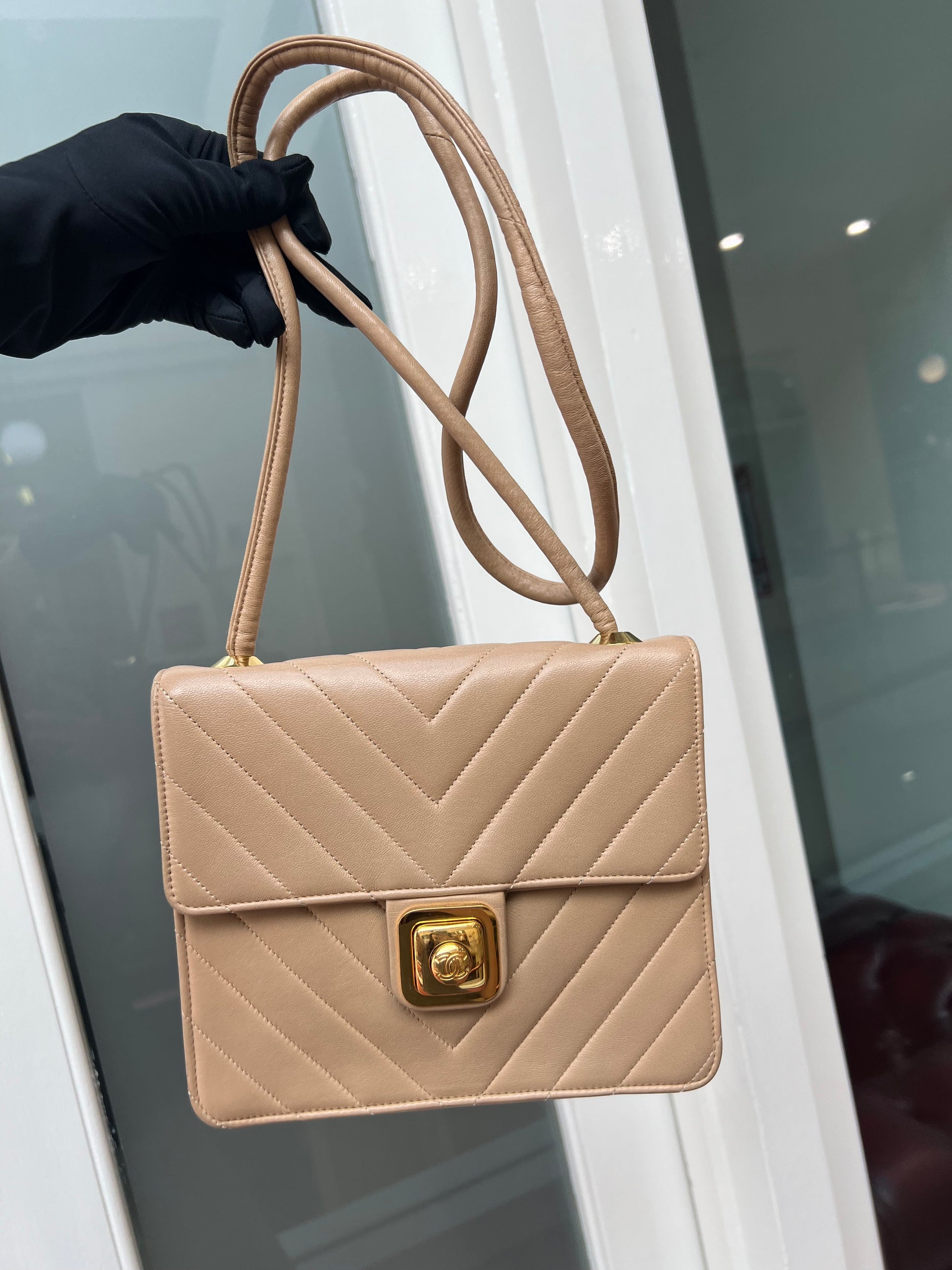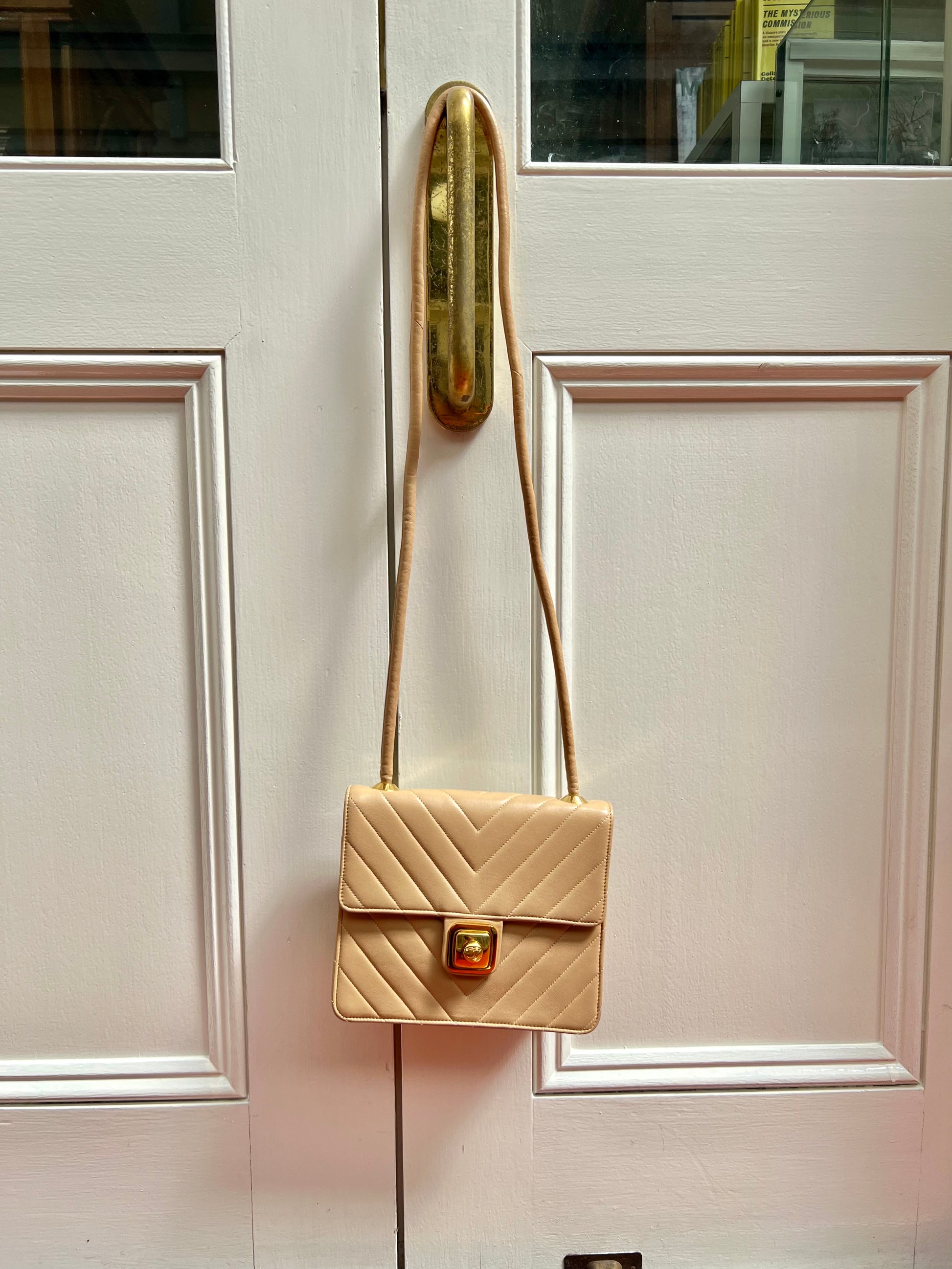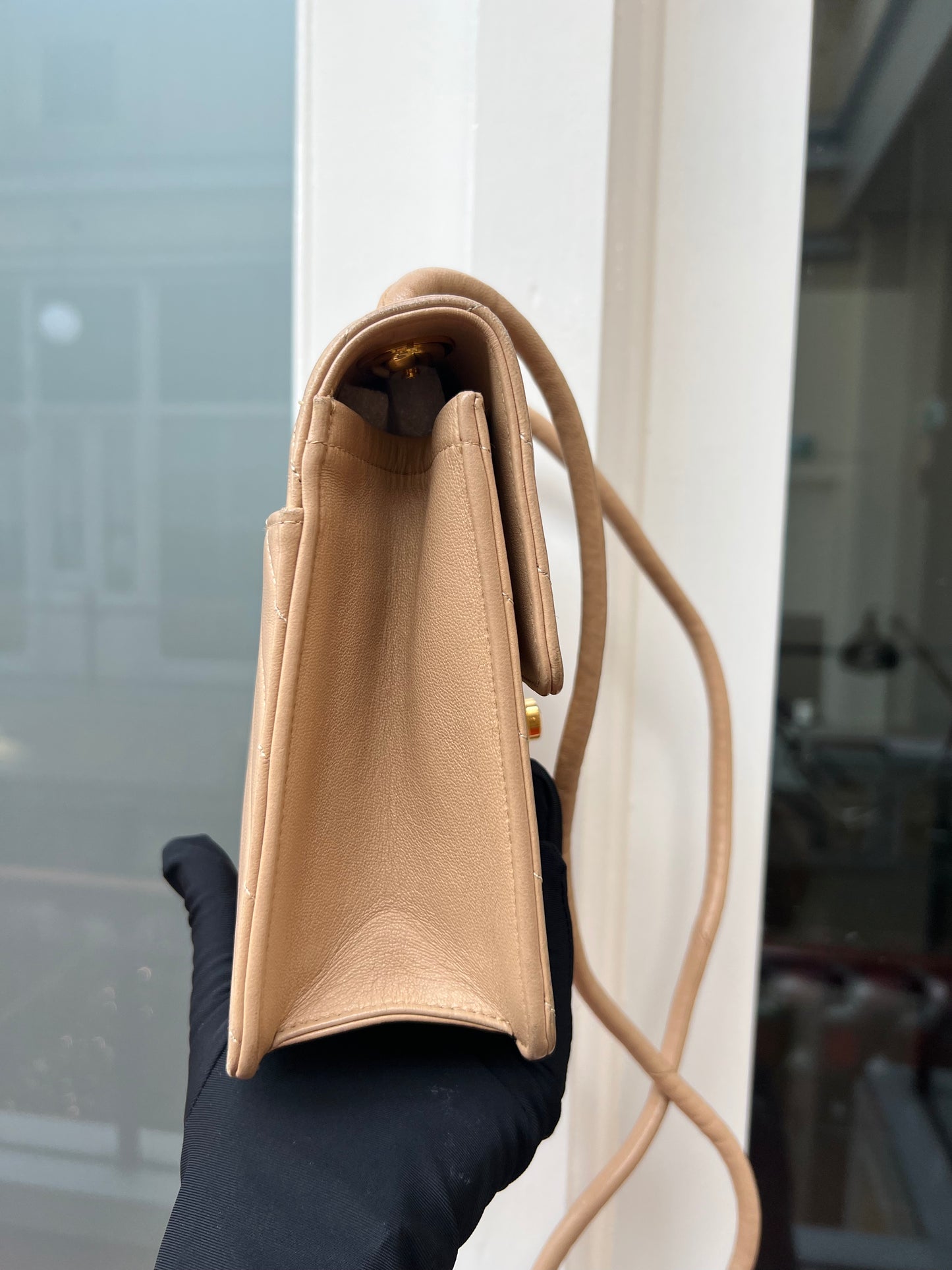 Pre-loved Chanel Vintage Lambskin Leather Crossbody bag Beige