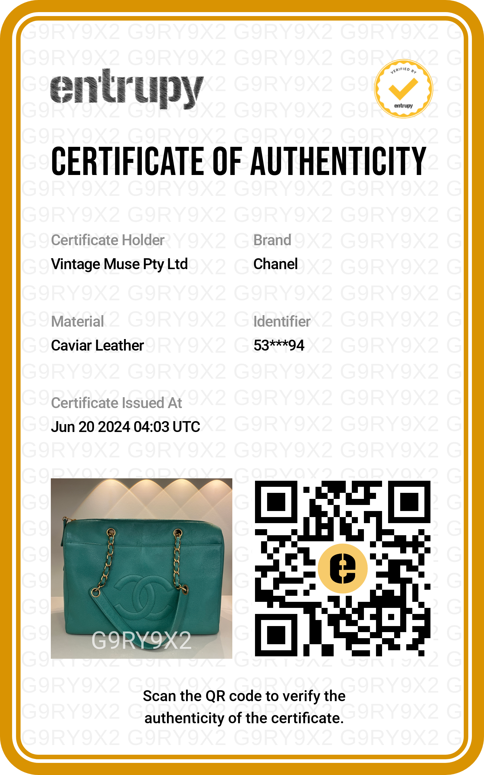 - Entrupy Authentication Certificate