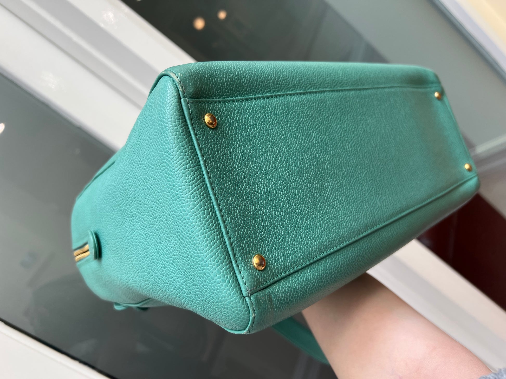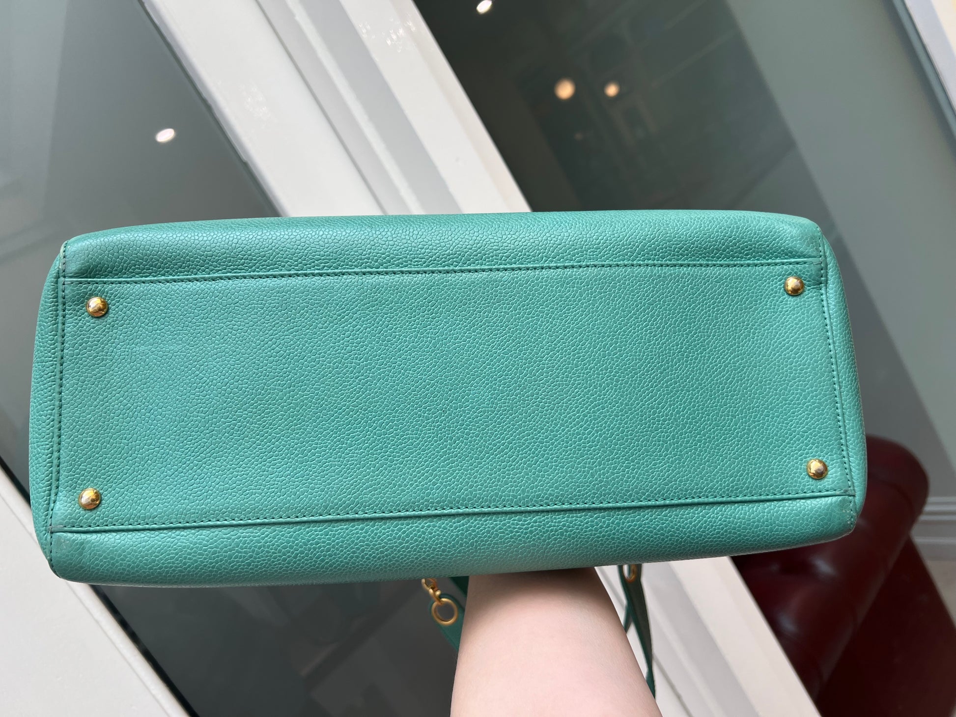 Rare color in beautifully preserved condition. Exhibits only a gentle structural softness, with delicate traces of tarnishing, oxidation, and scratches to the hardware. Outer edges show subtle fading, complemented by expertly refreshed recoloring. The interior bears a few discreet pen marks yet remains clean and well-kept. Corners and straps are sturdy, while the overall impression is fresh and refined — a true testament to the bag’s authenticity and exceptional craftsmanship.