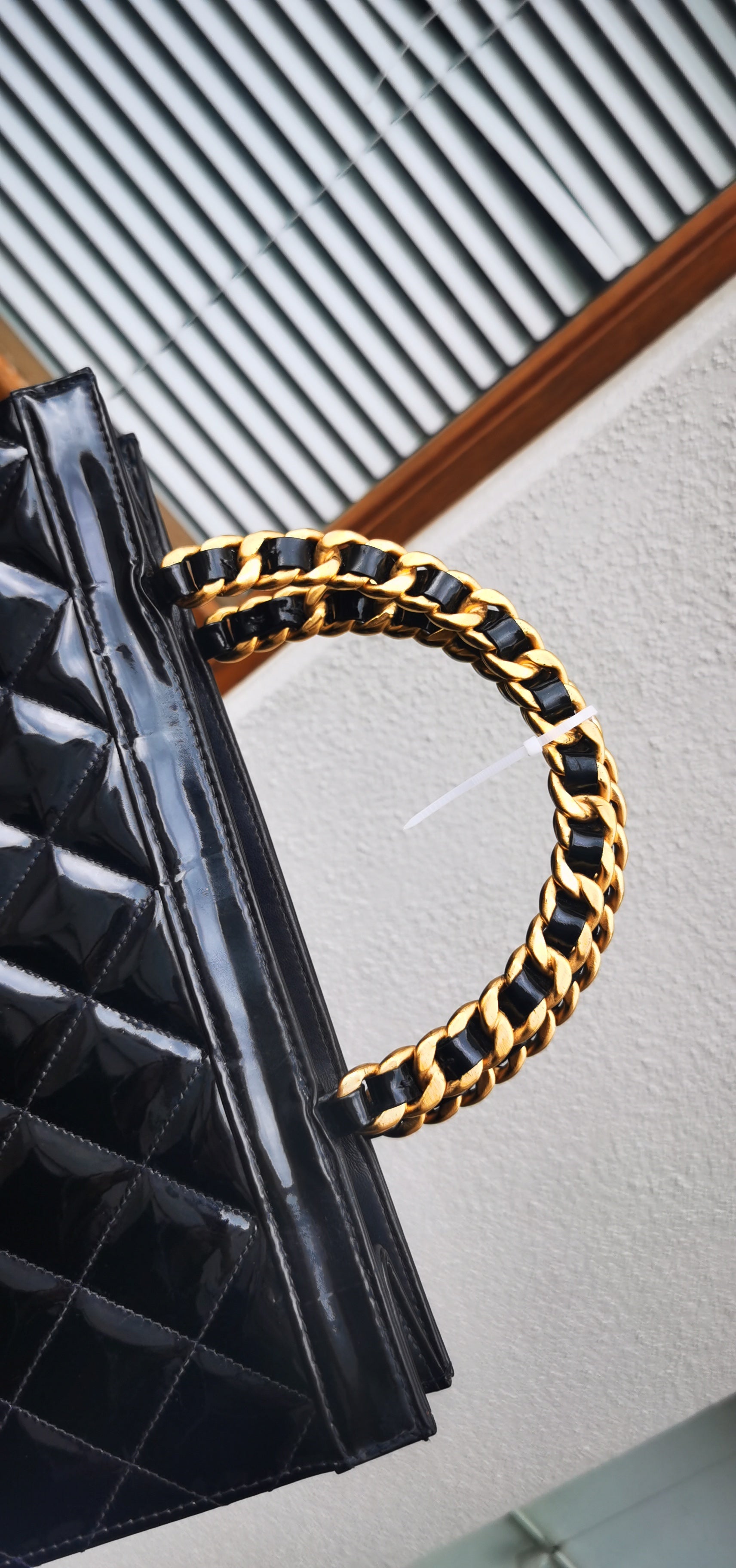 Pre-loved Chanel Vintage Patent Leather Handbag Black