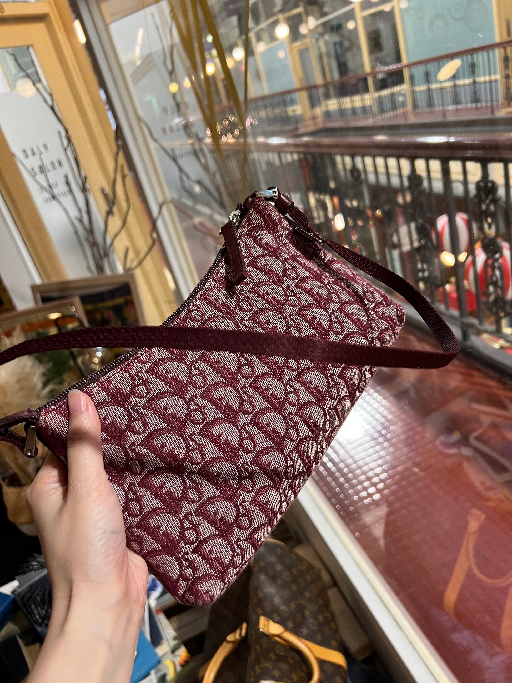 Pre-loved Christian Dior vintage Trotter Shoulder Bag Burgundy