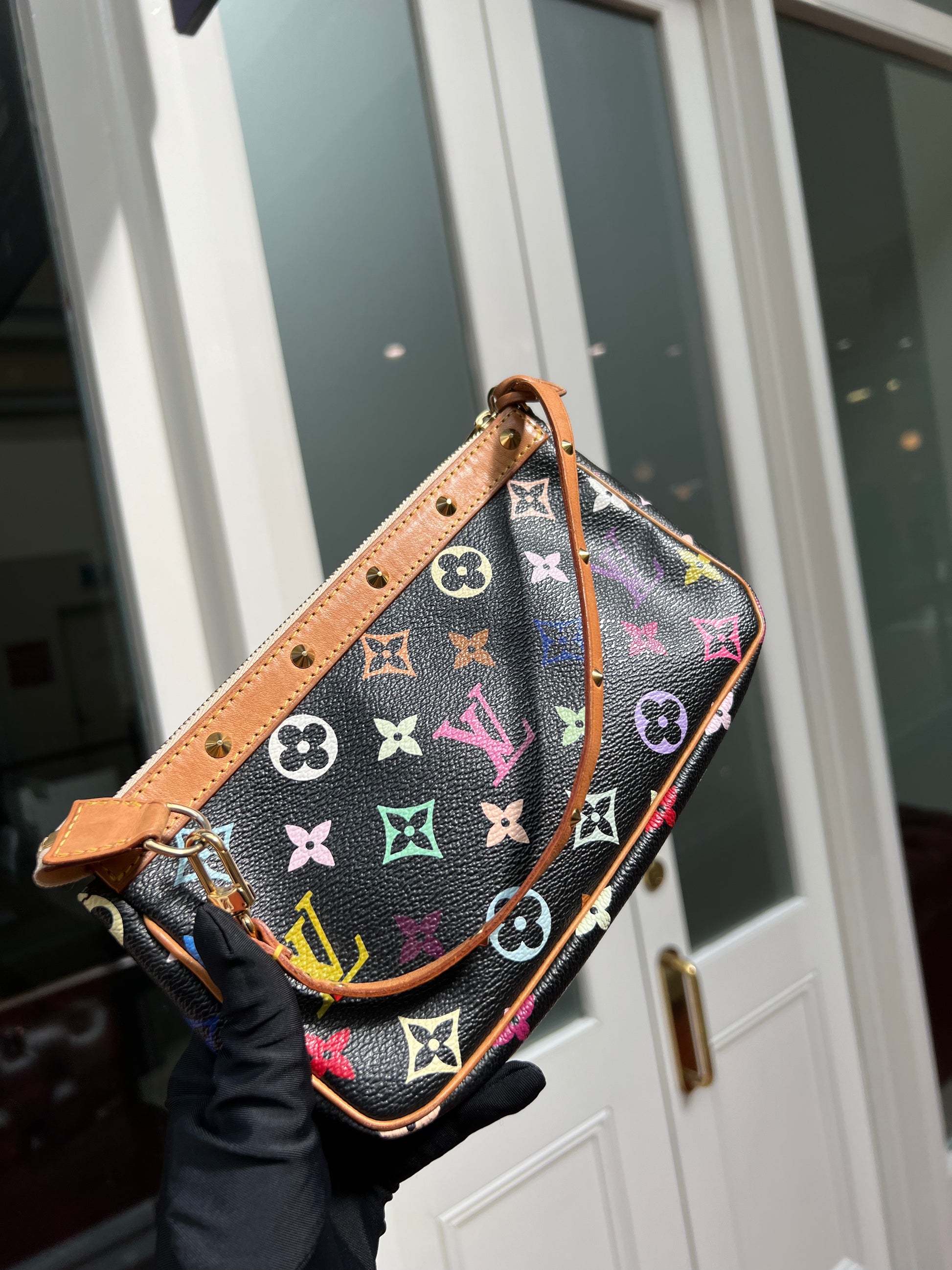Pre-loved Louis Vuitton Vintage Pochette Accessoire Leather Handbag In Takashi Murakami Multicolour Monogram