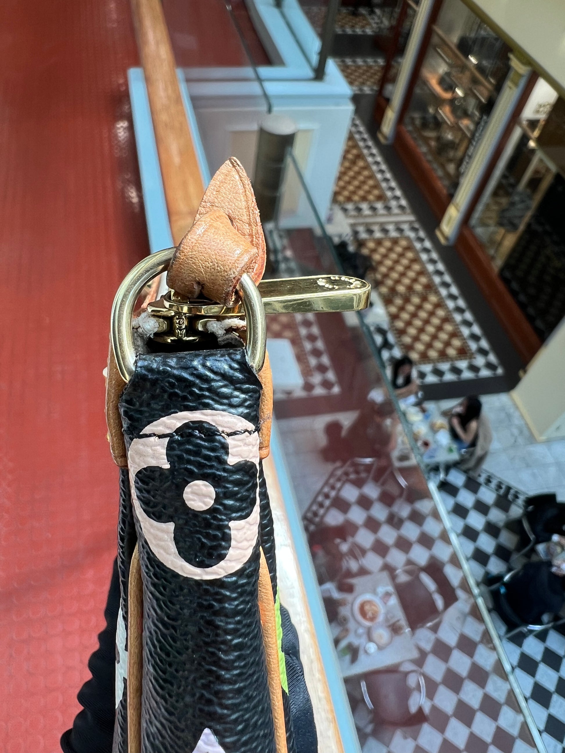Rare Takashi Murakami multicolour monogram bag. In very good vintage condition; marks and signs of wear on outer and on handles, marks along zip, scratches on hardware. Mild of wear singes that may not even be seen . But if you really look , you can find them.
