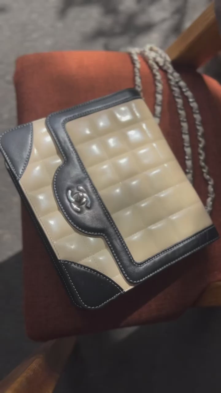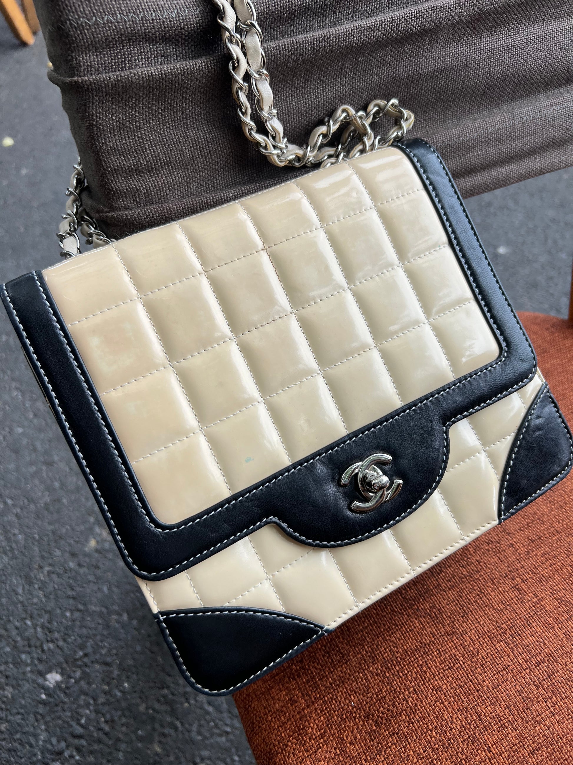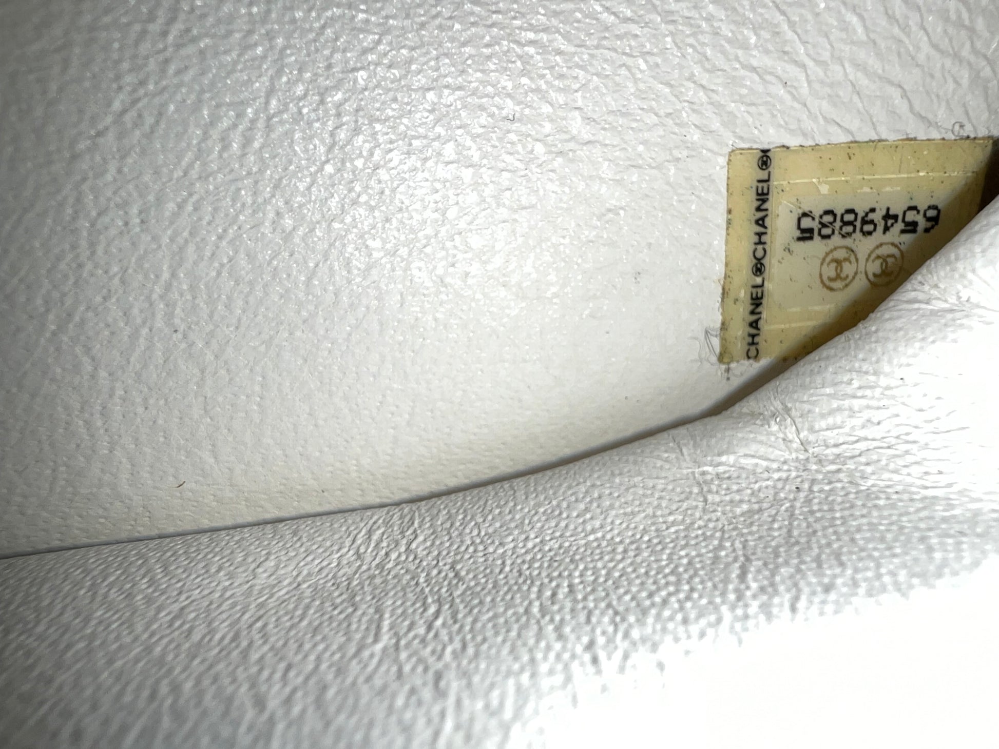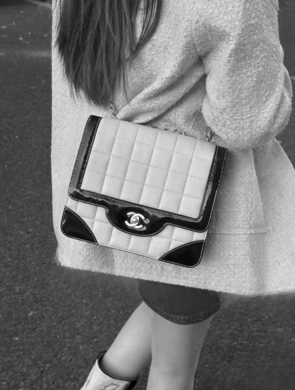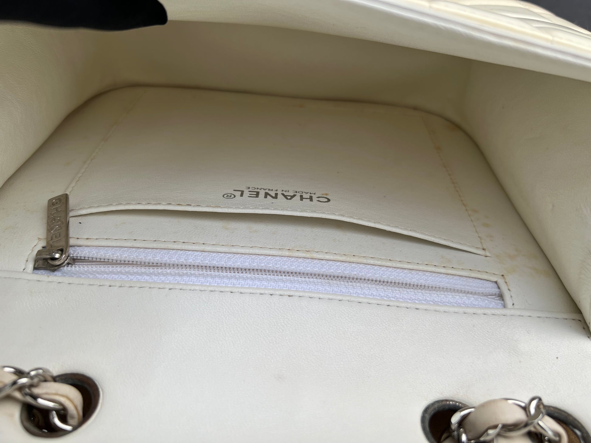 The Classic White and Black bag is not only versatile, with the option to wear it as a crossbody bag or as a double chain under arm bag, but it also exudes timeless elegance. Despite showing signs of wear such as allover dirt rubbing, discoloration, and normal wear and tear, including stains and faded edges, as well as pressure marks and dull or corroded metal parts, its functionality remains uncompromised. These minor imperfections do not detract from the bag's overall appeal. In fact, they add character and charm, giving it a unique and lived-in aesthetic. Despite its wear, this bag still offers exceptional value for money and is undoubtedly a must-have in any fashion enthusiast's wardrobe.