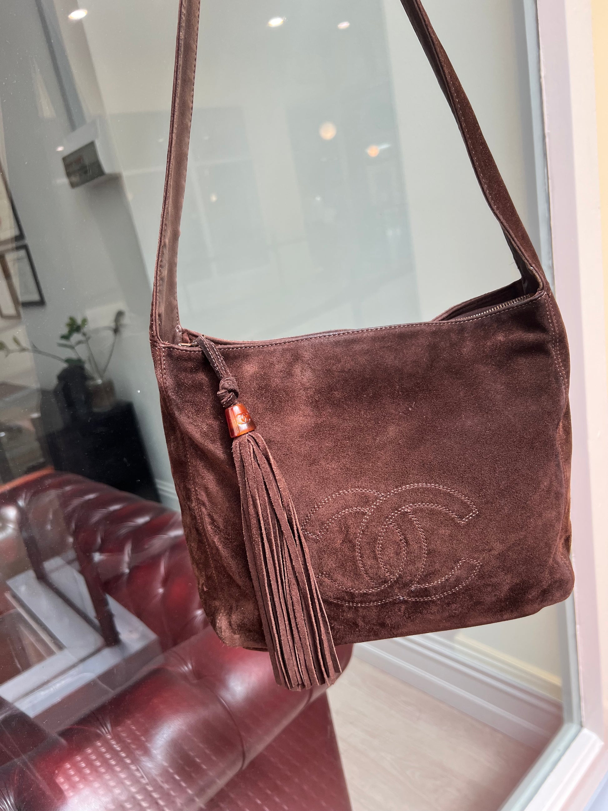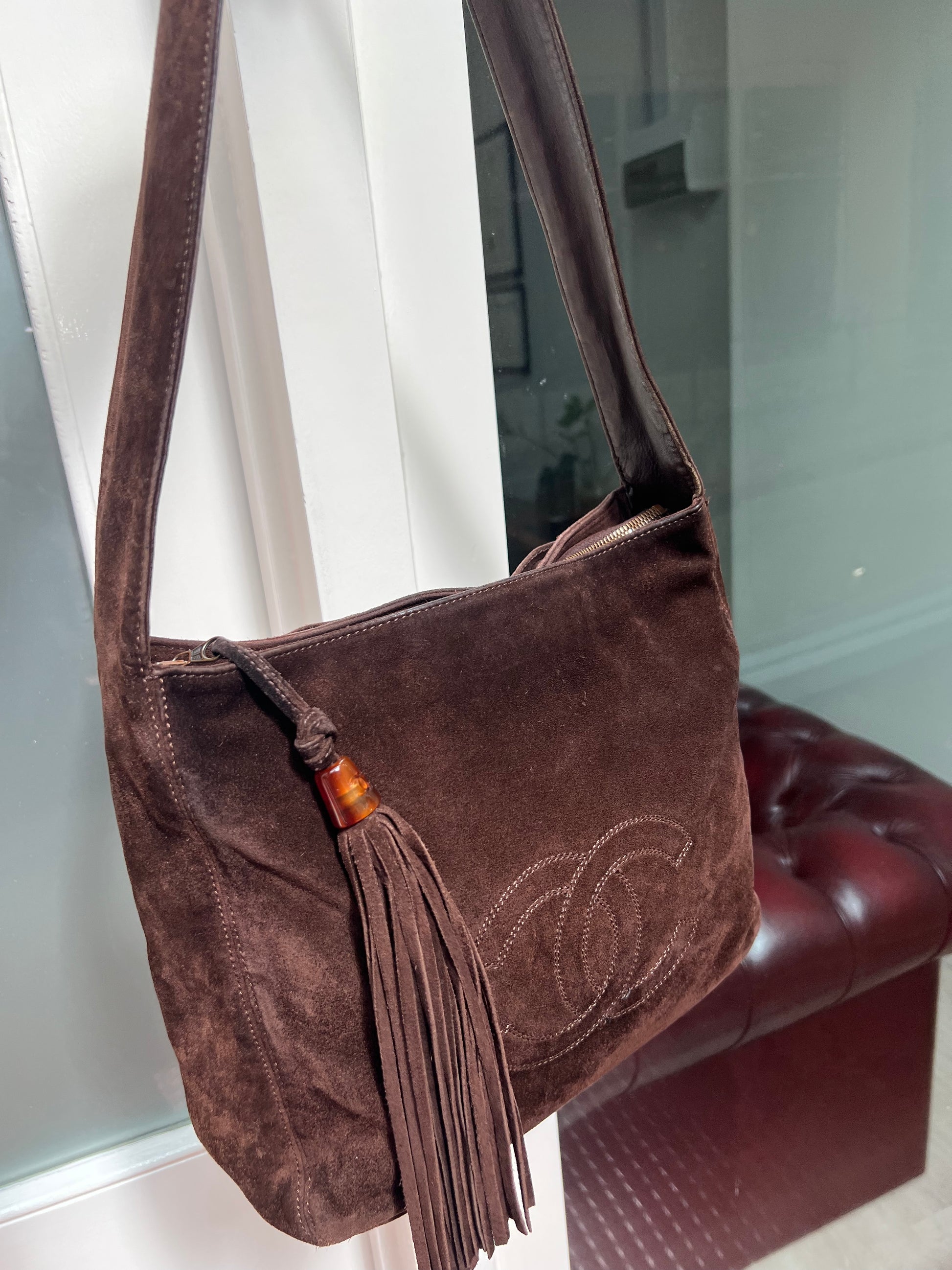 Pre-loved Chanel Vintage Brown Suede Tassel CC Shoulder Bag