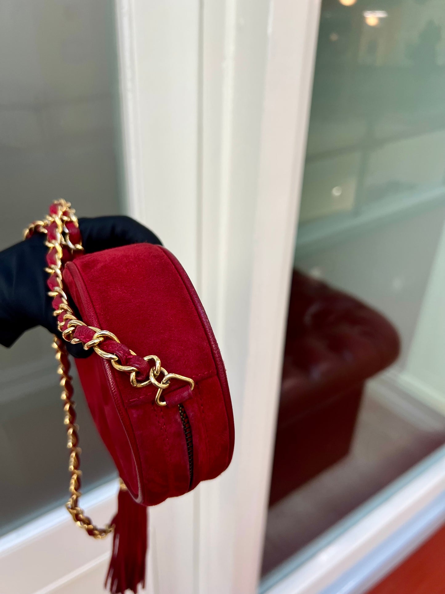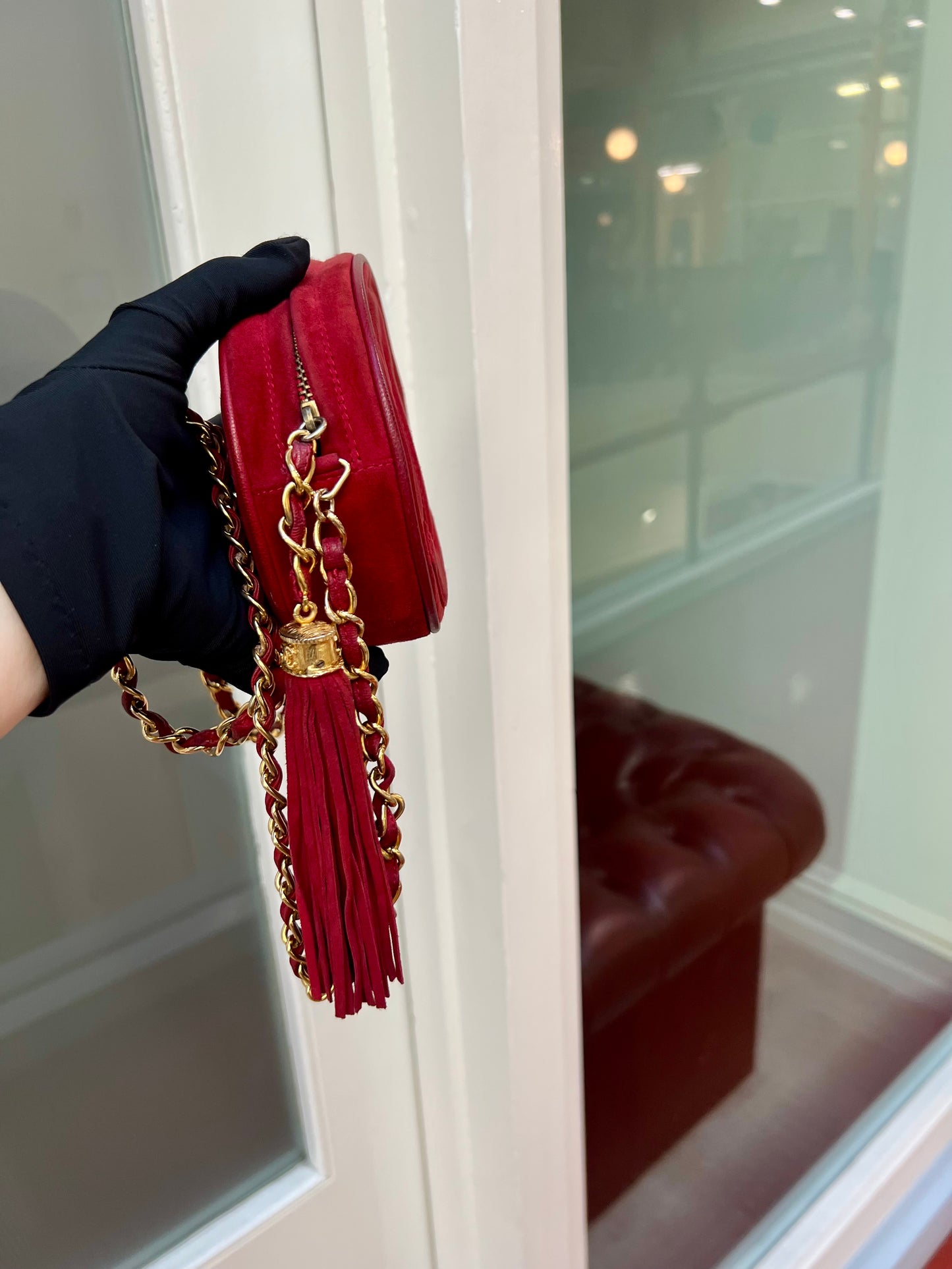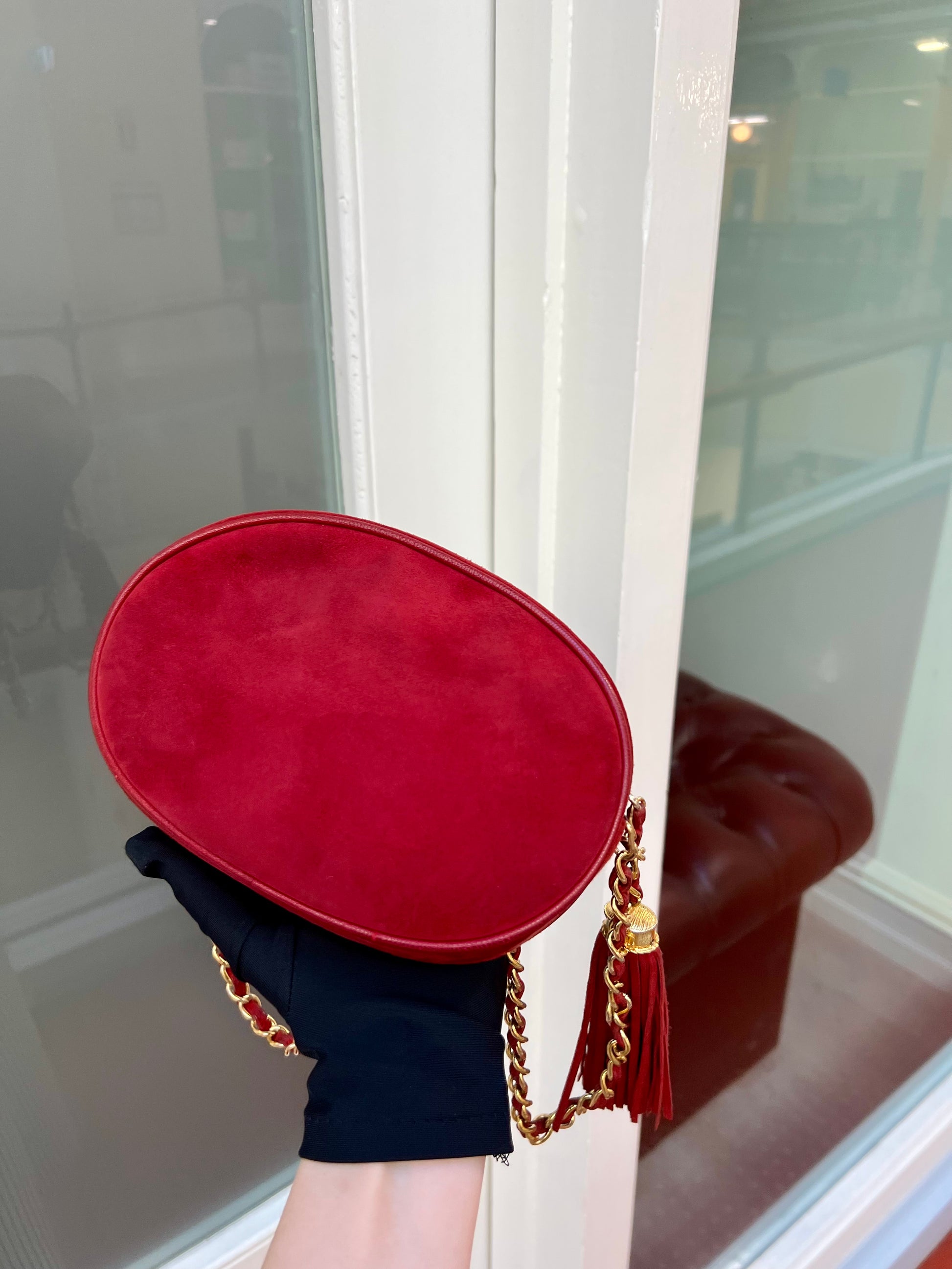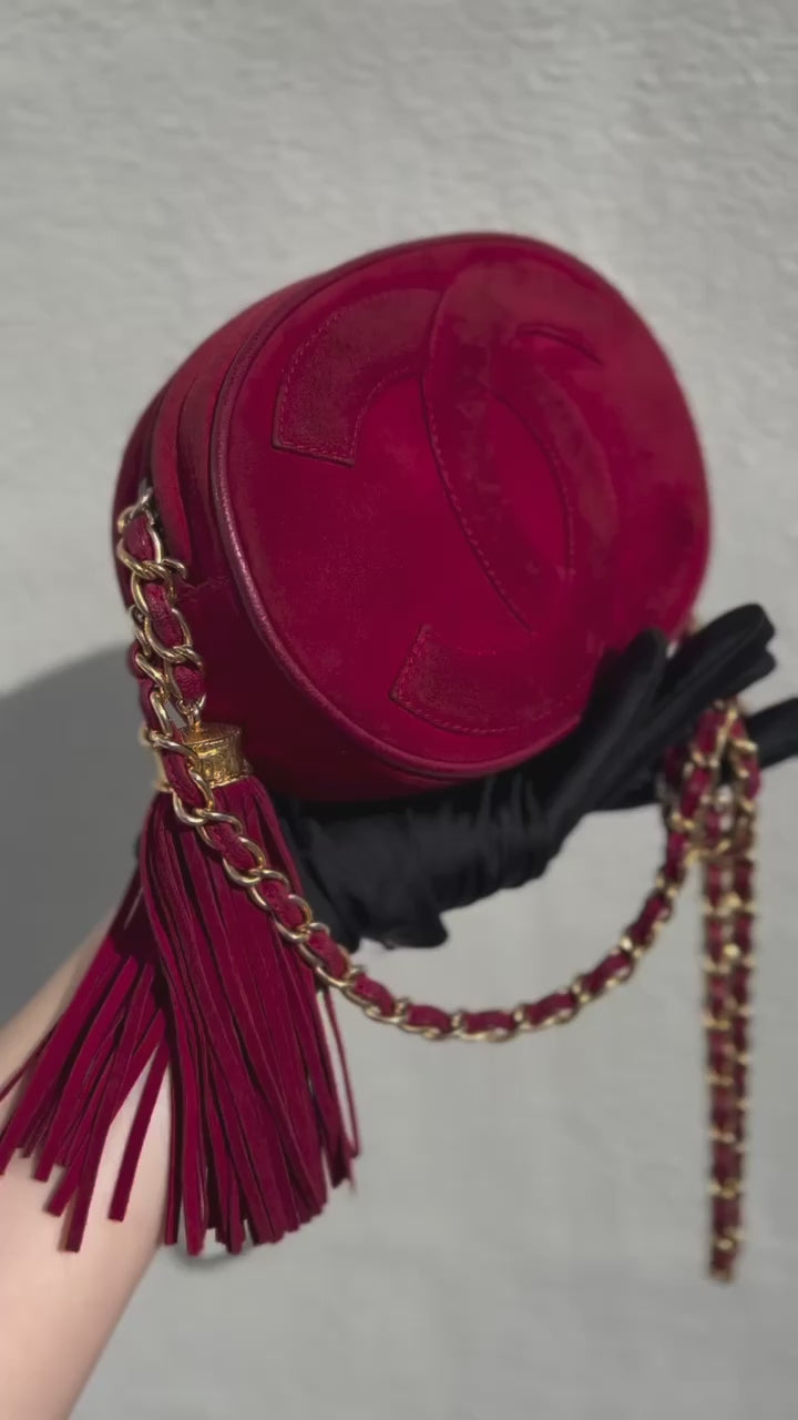 Pre-loved Chanel Vintage Oval CC Tassel Crossbody Bag Suede 90s