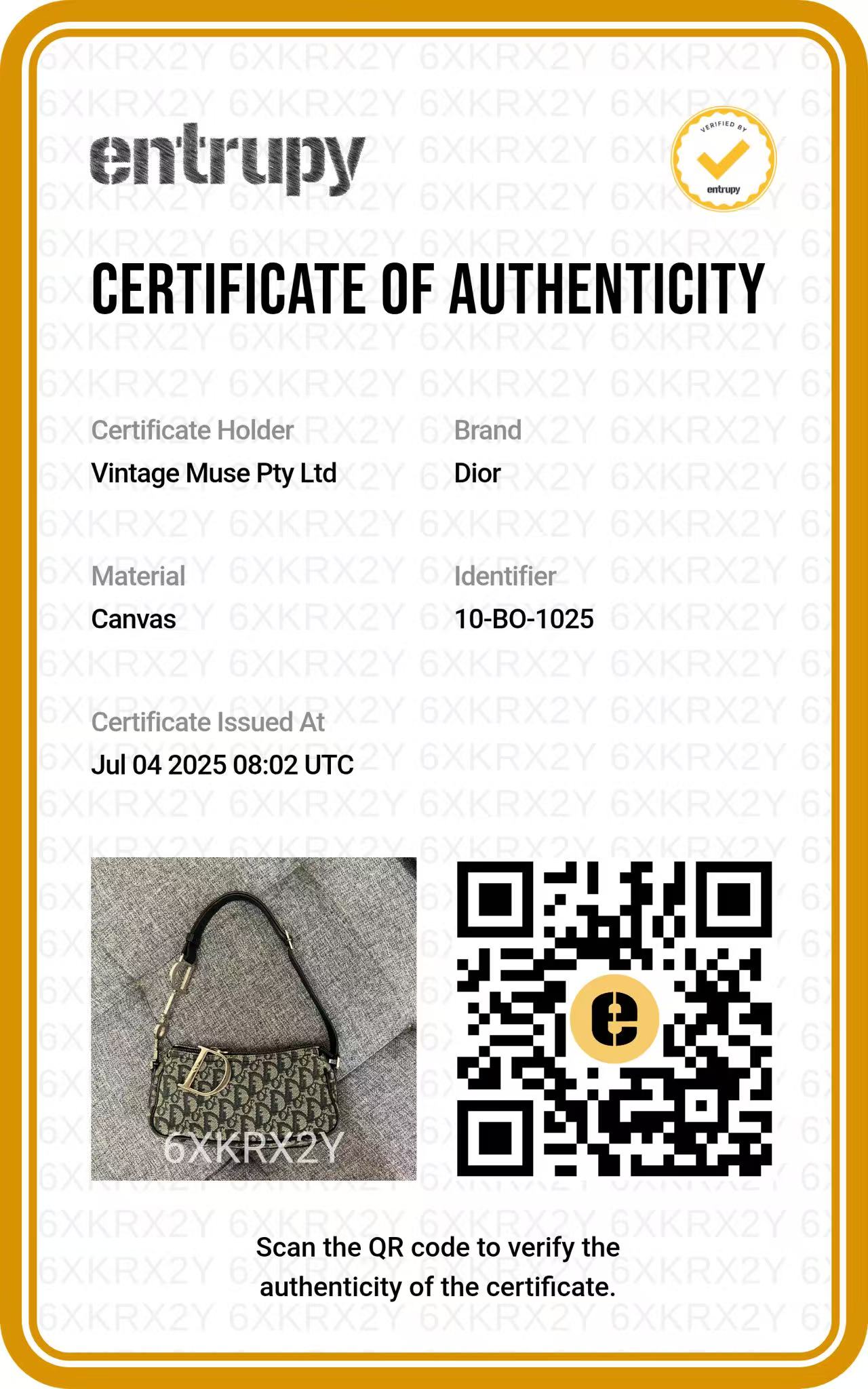 For additional peace of mind and future reference, can also include a Certificate of Authenticity from Entrupy , which is a third-party authentication service. Entrupy is the only technology-based, powered by Al, authentication solution on the market to provide trust to buyers and sellers of luxury handbags.