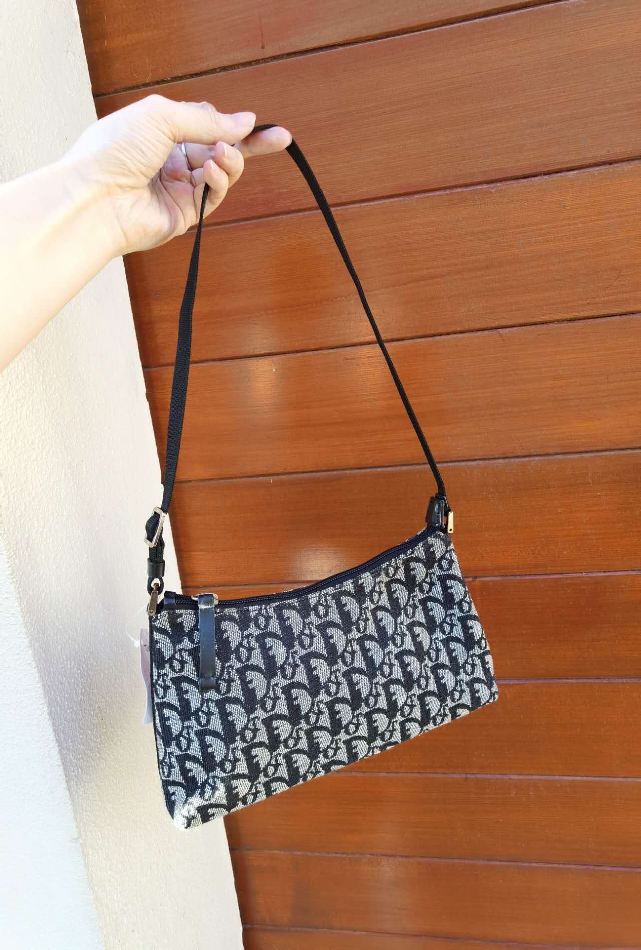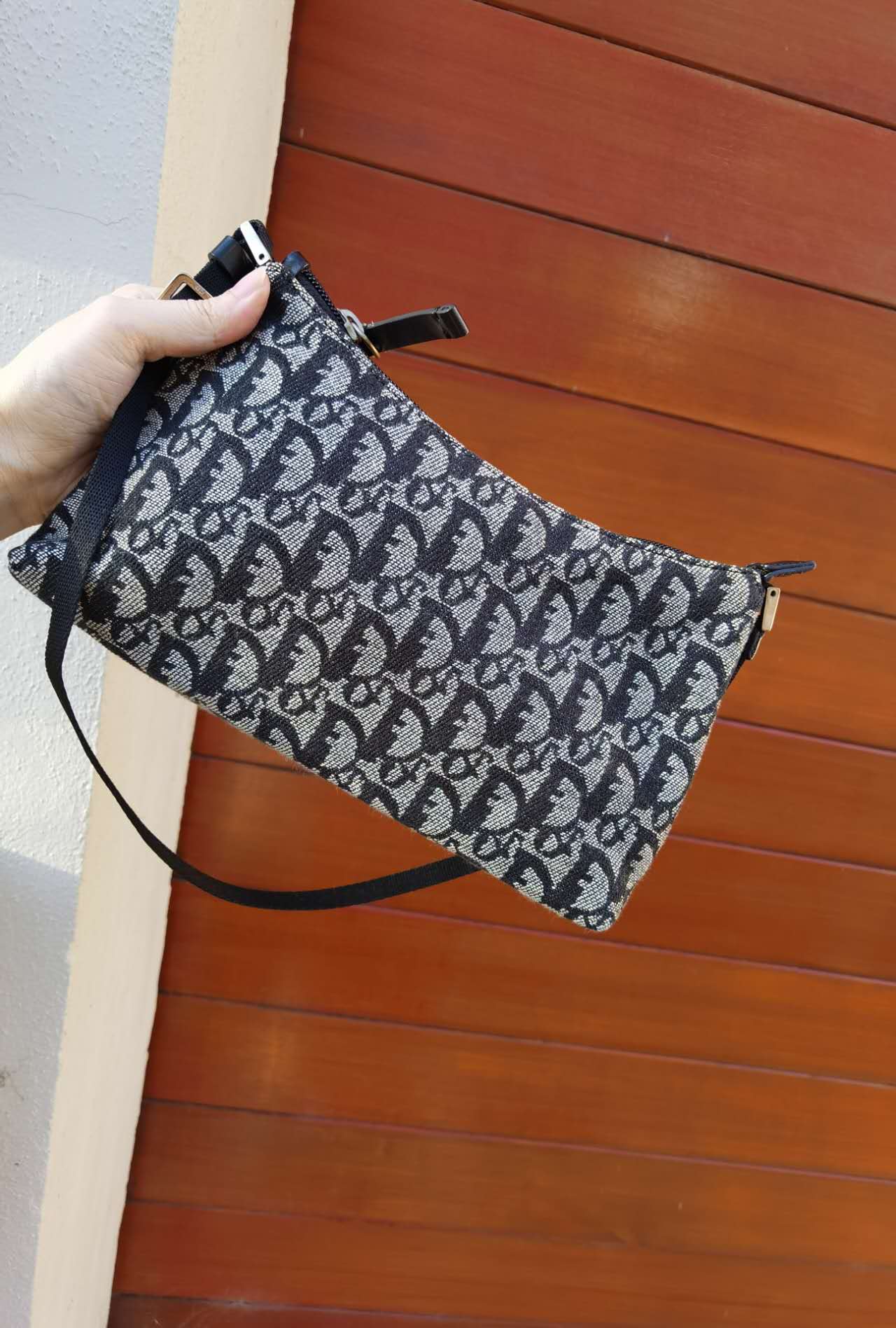 Pre-loved Christian Dior vintage Trotter Shoulder Bag Navy
