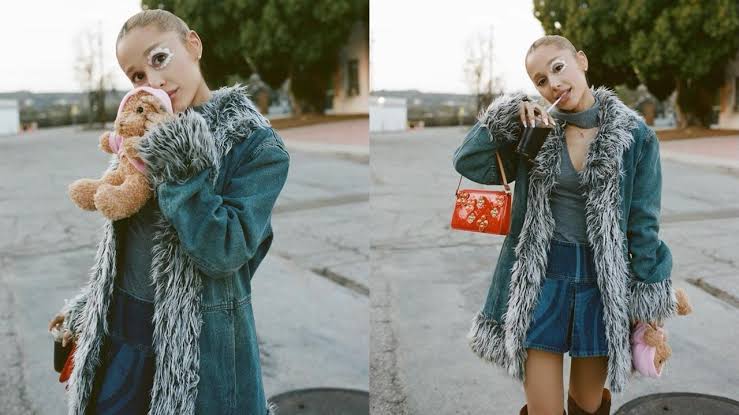 Ariana grande wearing a louisvuitton 'Lexington Fleurs' pochette in her new music video "We can't be friends (wait for your love)"