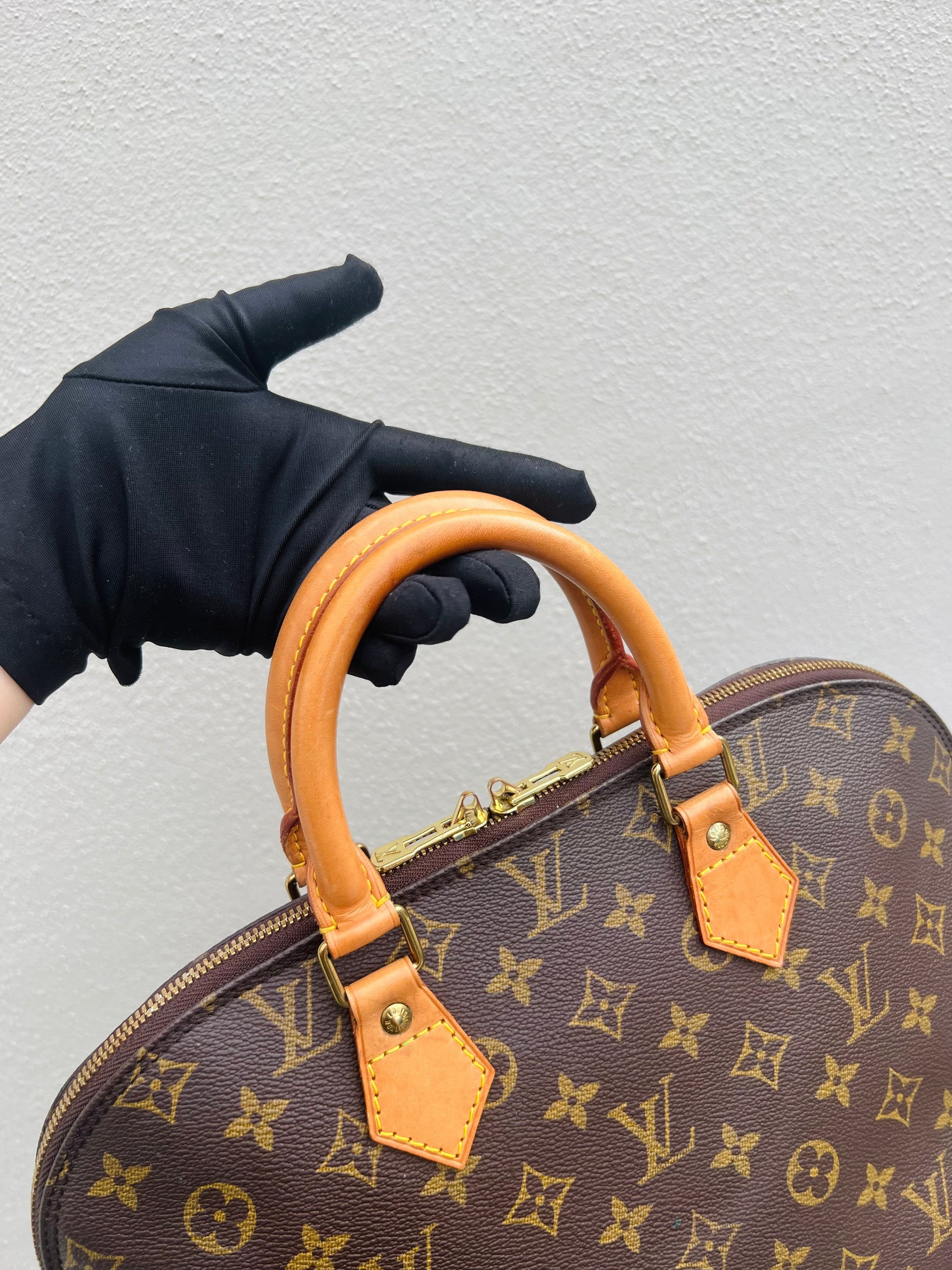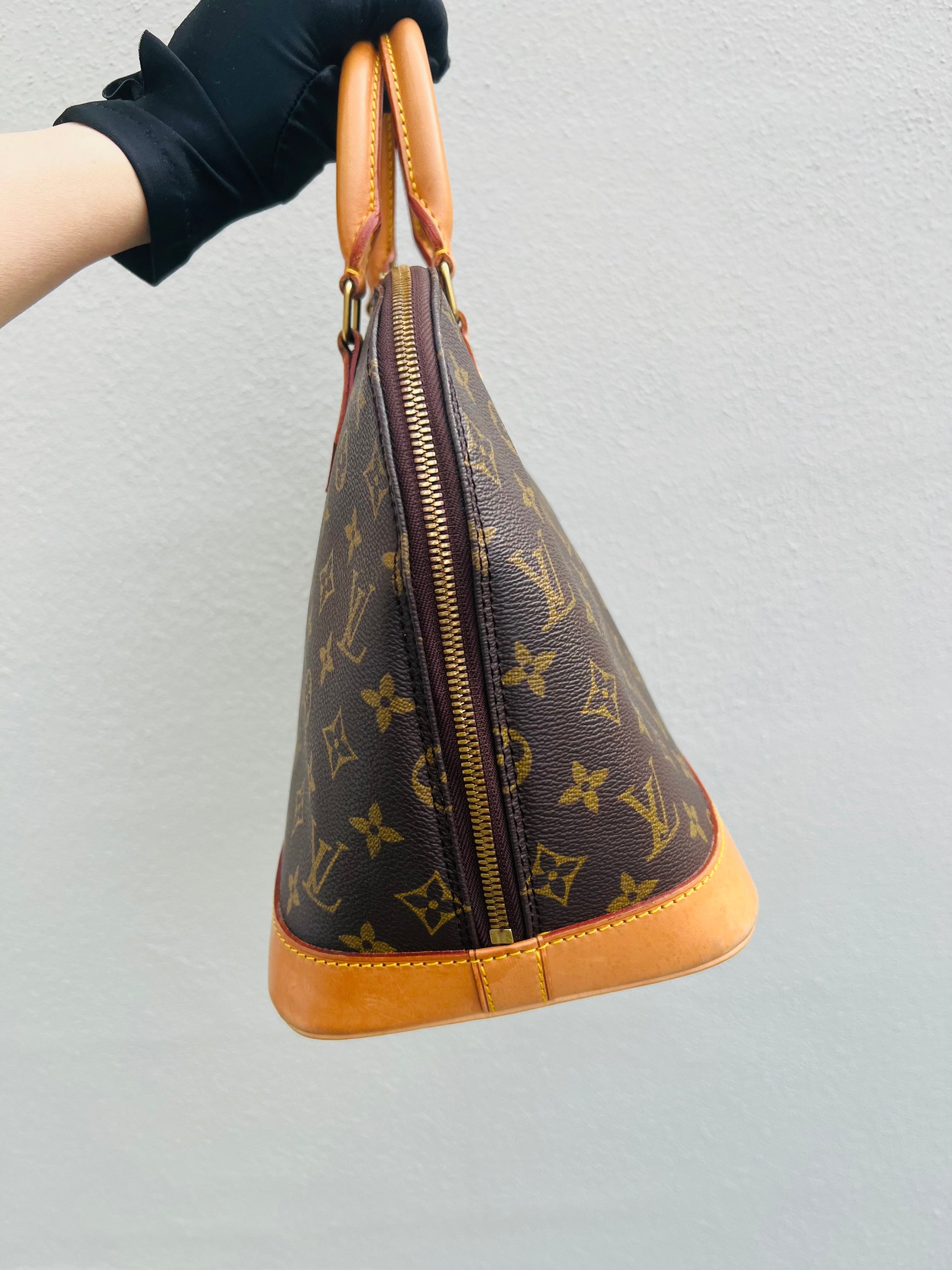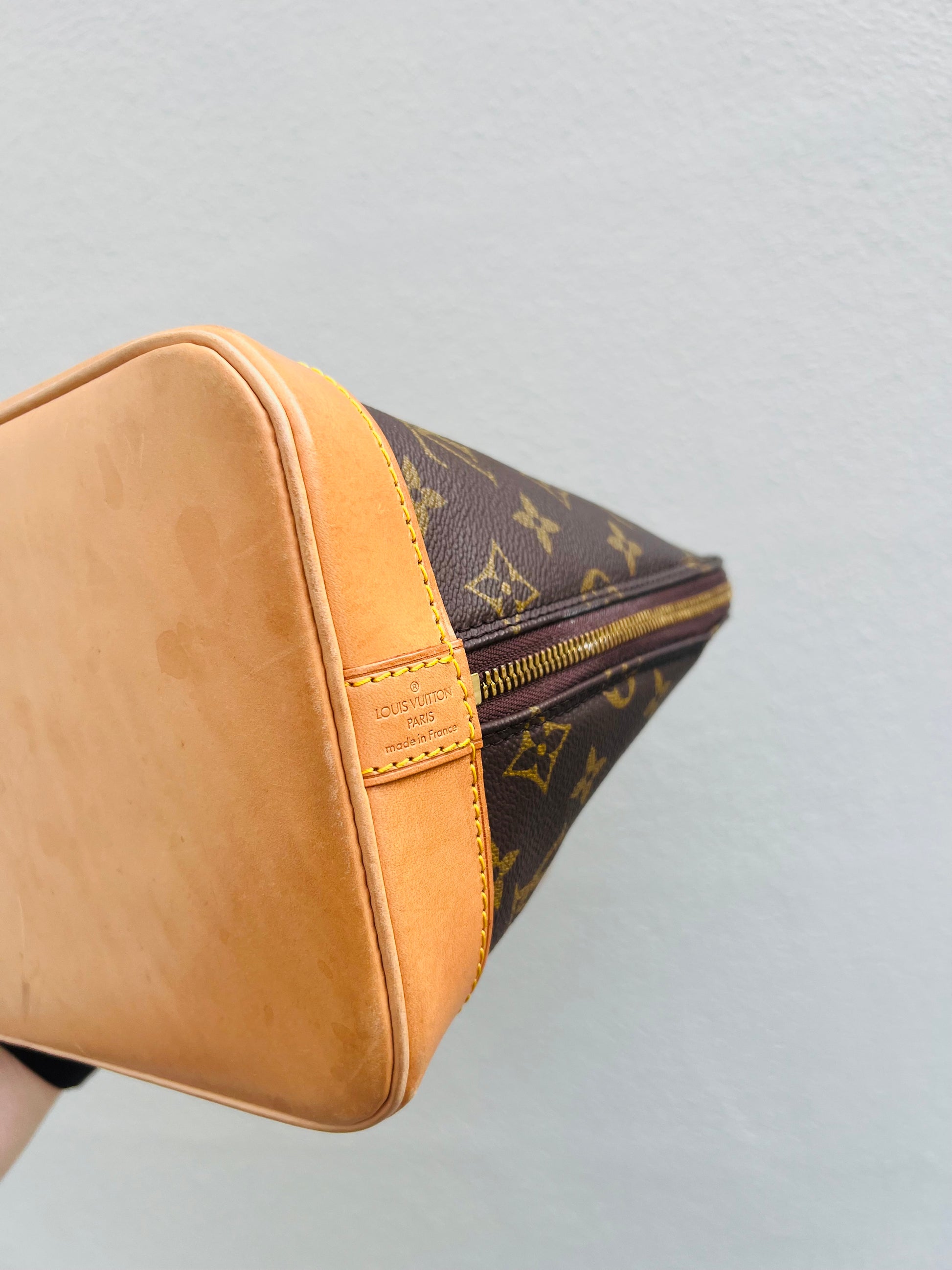 Louis Vuitton Alma PM is in very good vintage condition, which is a stylish unisex handbag for travel and everyday use. Light scratches on metal parts, slight dirt rubbing throughout, normal wear and tear.