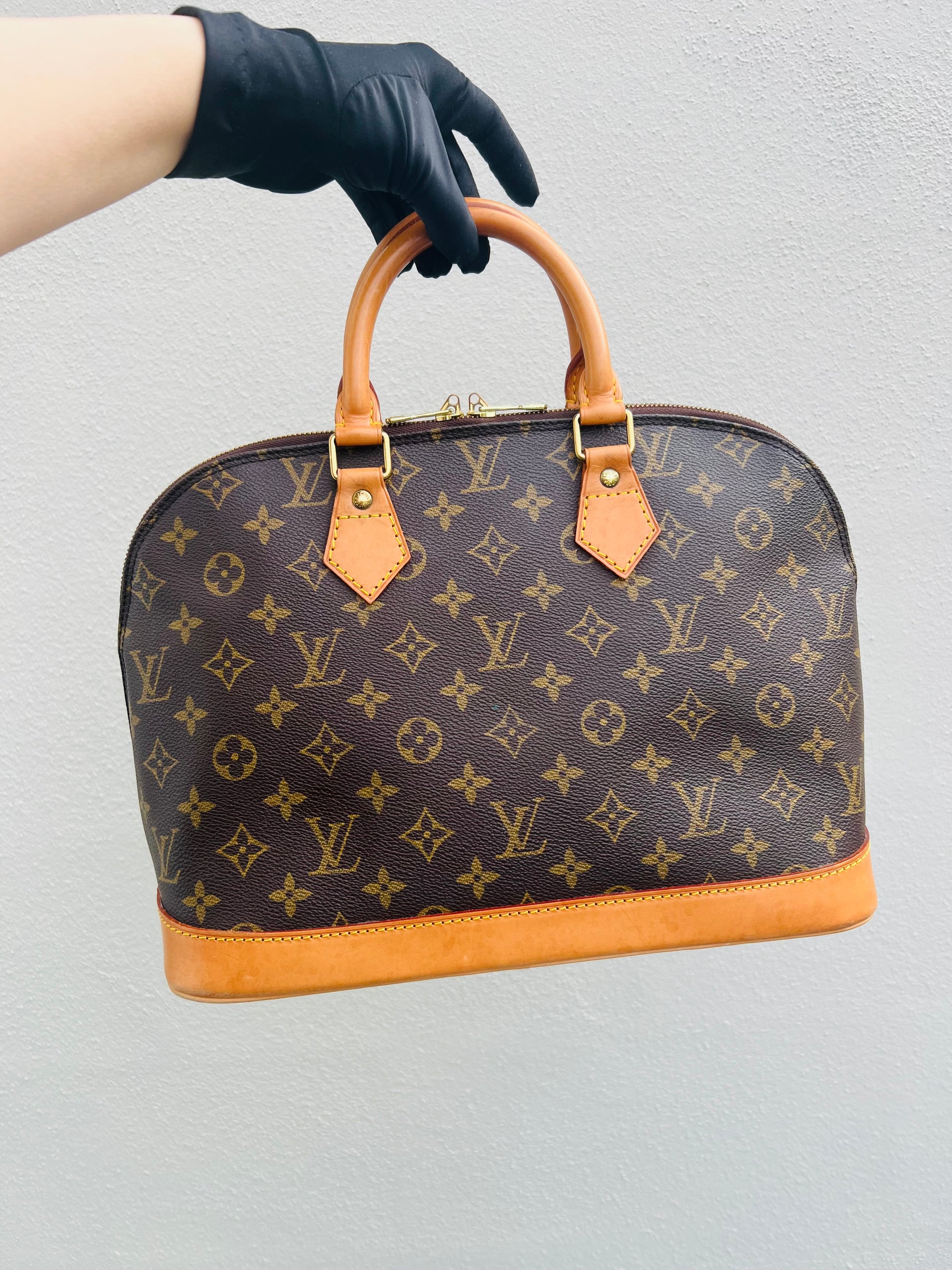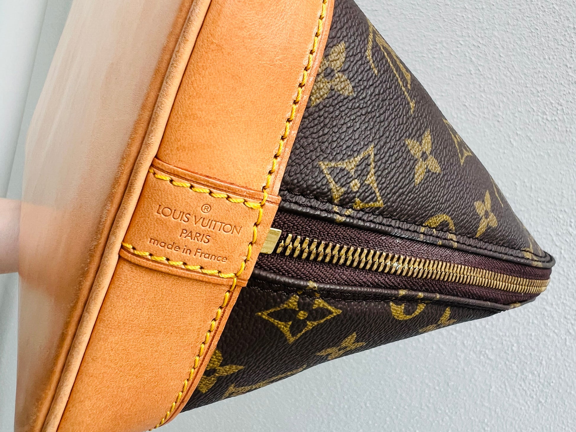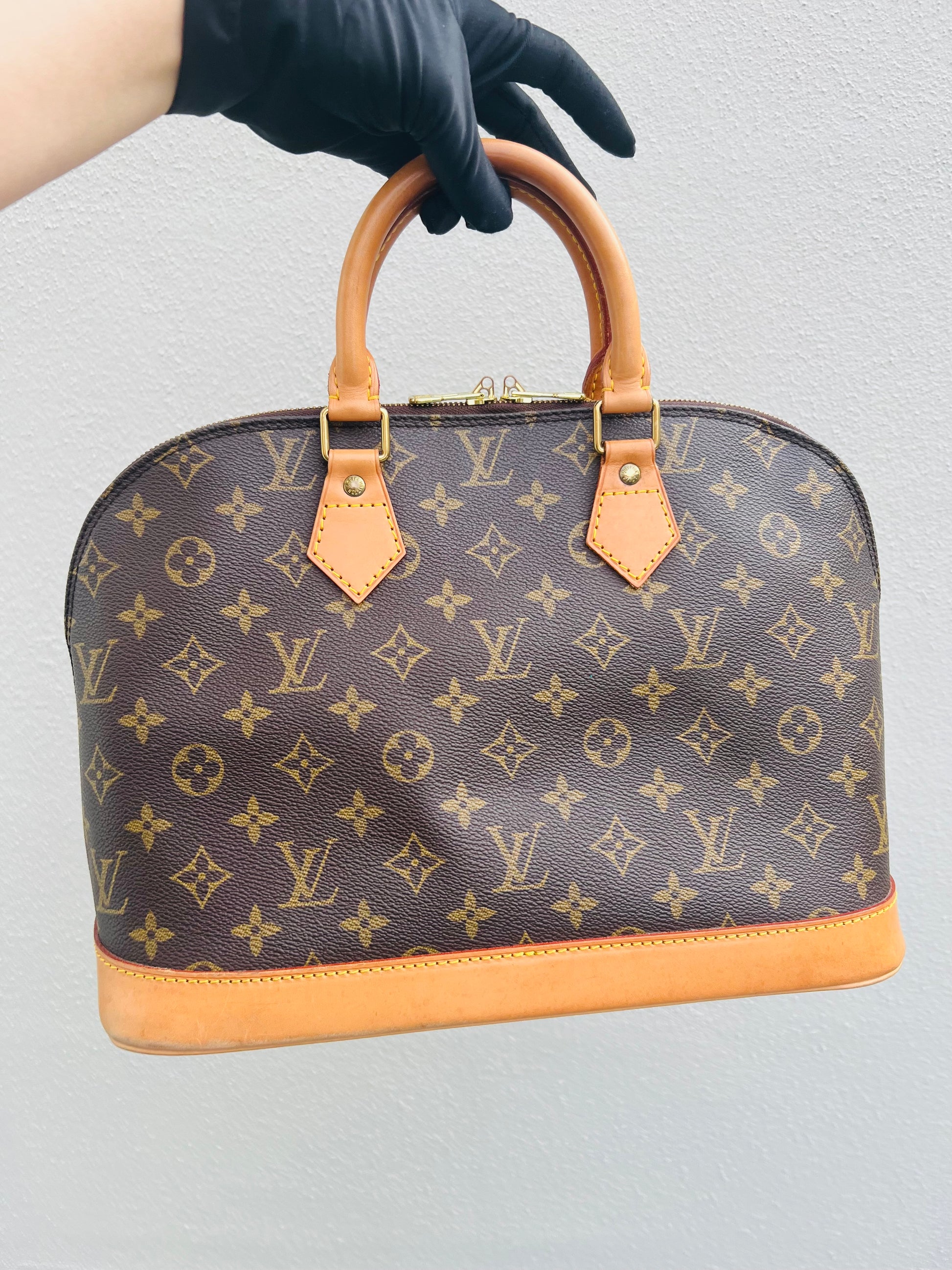Louis Vuitton Alma PM is in very good vintage condition, which is a stylish unisex handbag for travel and everyday use. Light scratches on metal parts, slight dirt rubbing throughout, normal wear and tear.