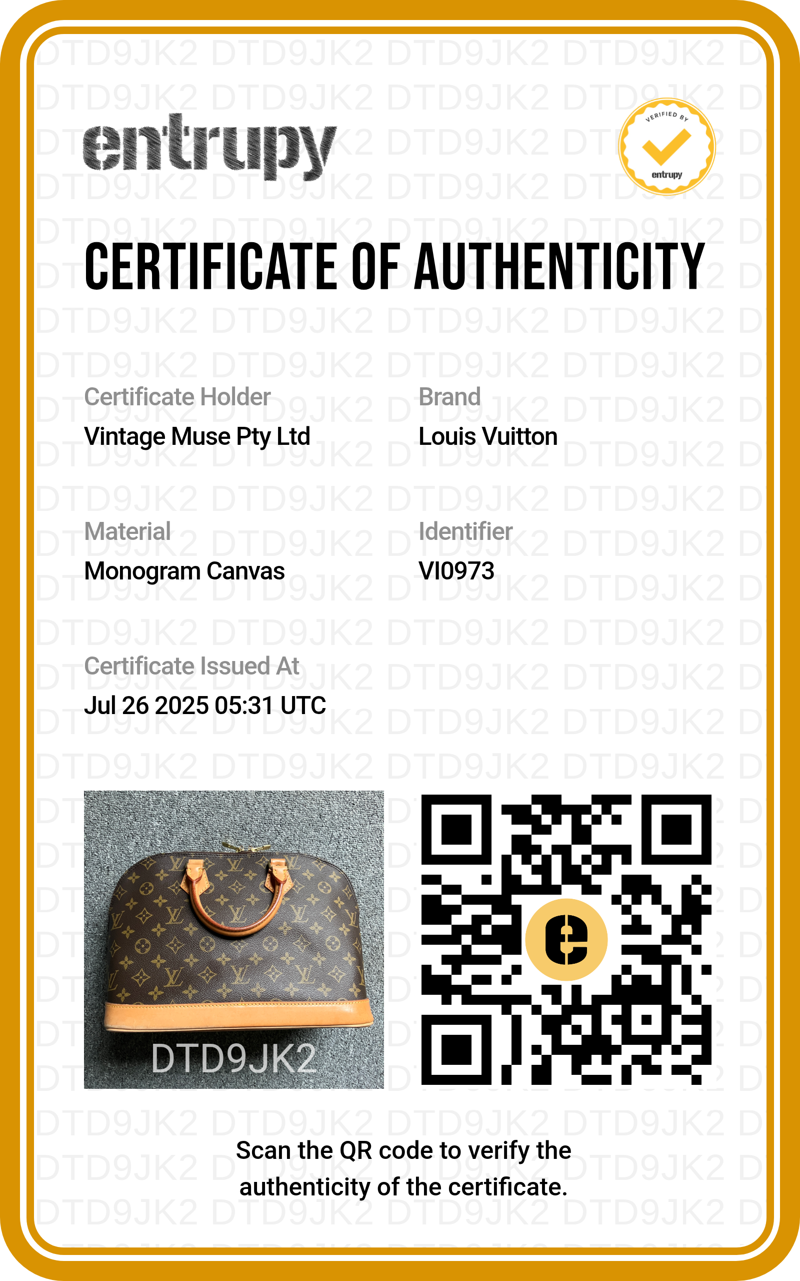 For additional peace of mind and future reference, can also include a Certificate of Authenticity from Entrupy , which is a third-party authentication service. Entrupy is the only technology-based, powered by Al, authentication solution on the market to provide trust to buyers and sellers of luxury handbags.