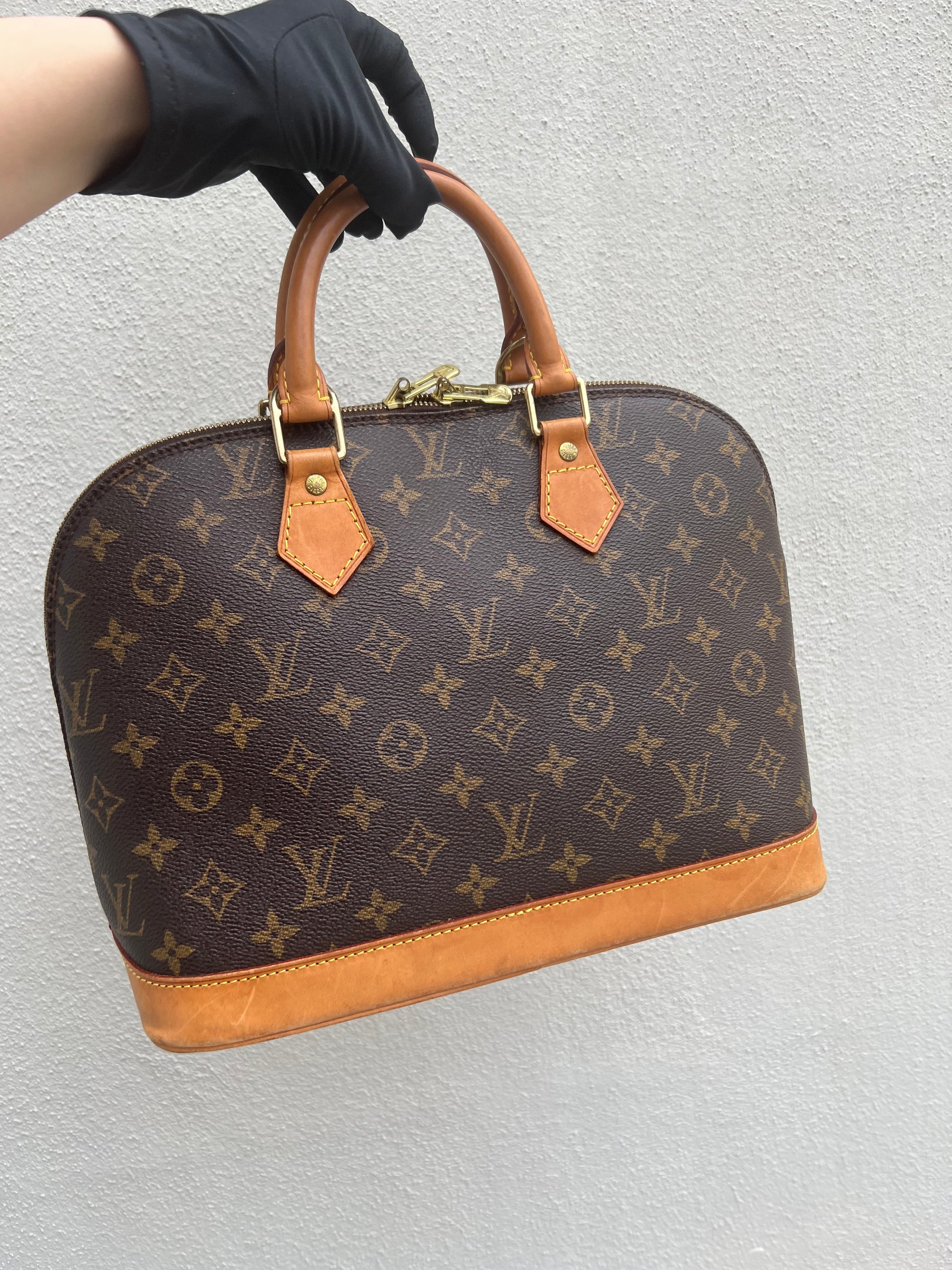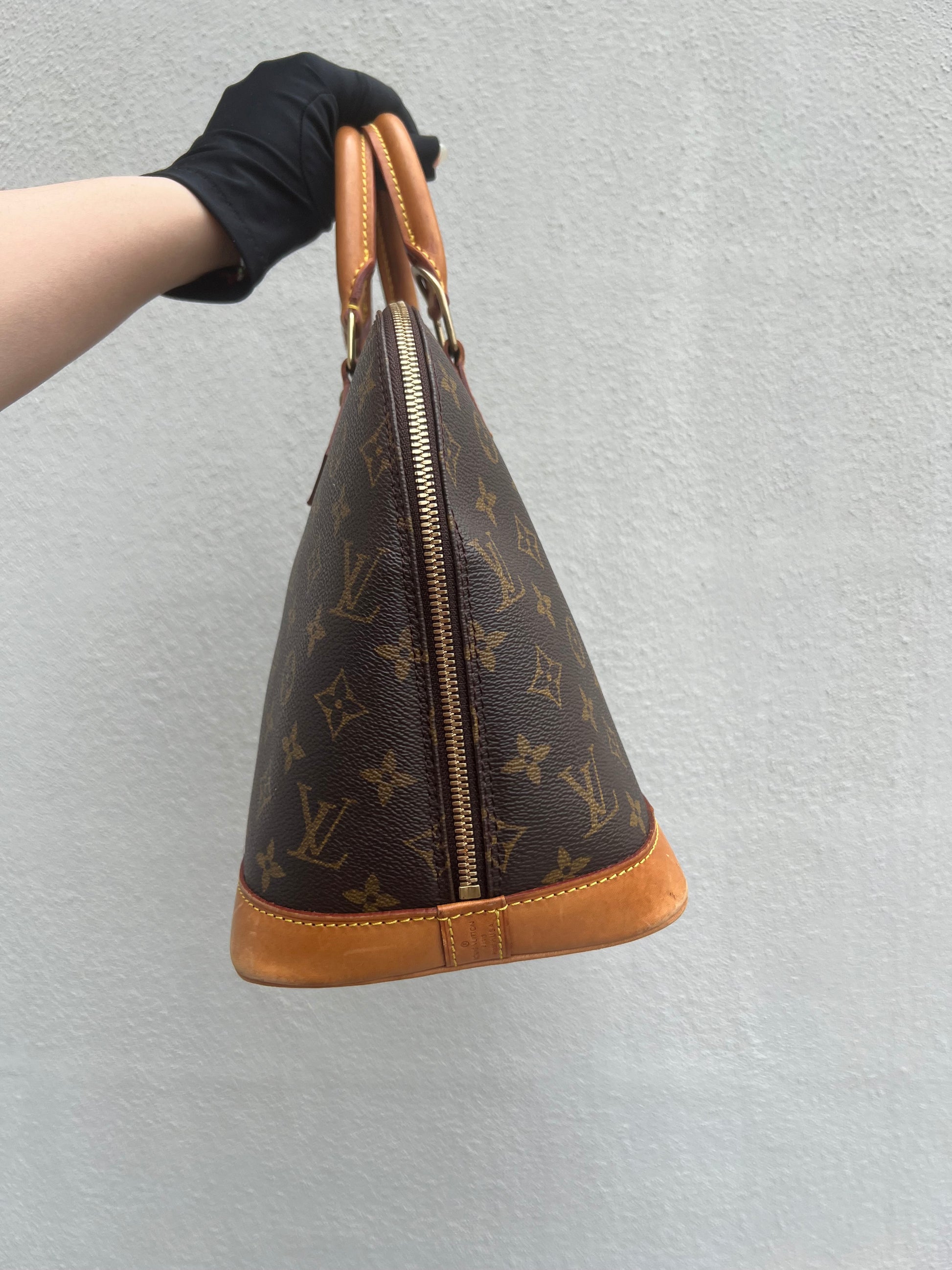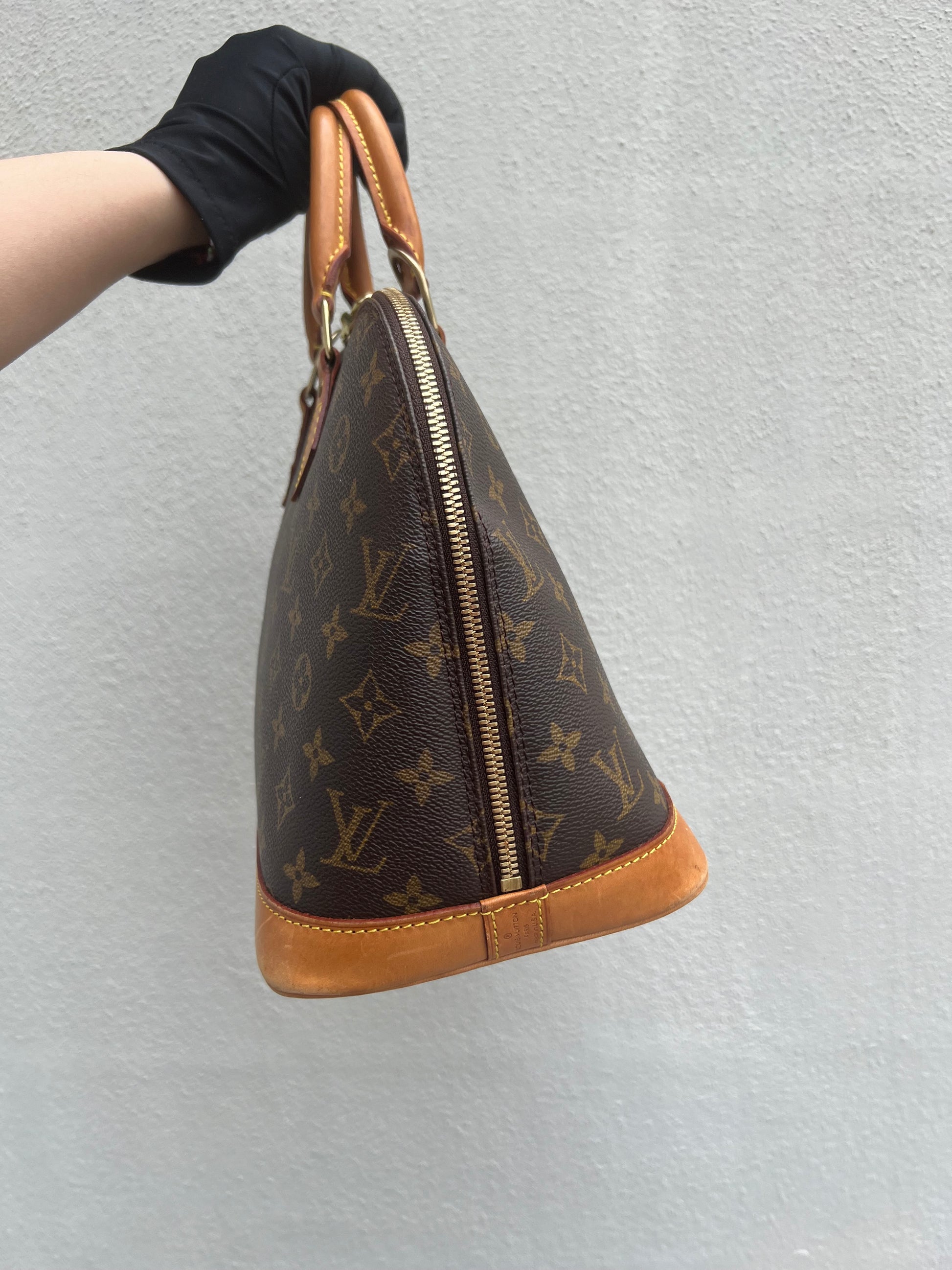 Louis Vuitton Alma PM is in very good vintage condition, which is a stylish unisex handbag for travel and everyday use. Light scratches on metal parts, slight dirt rubbing throughout, normal wear and tear.