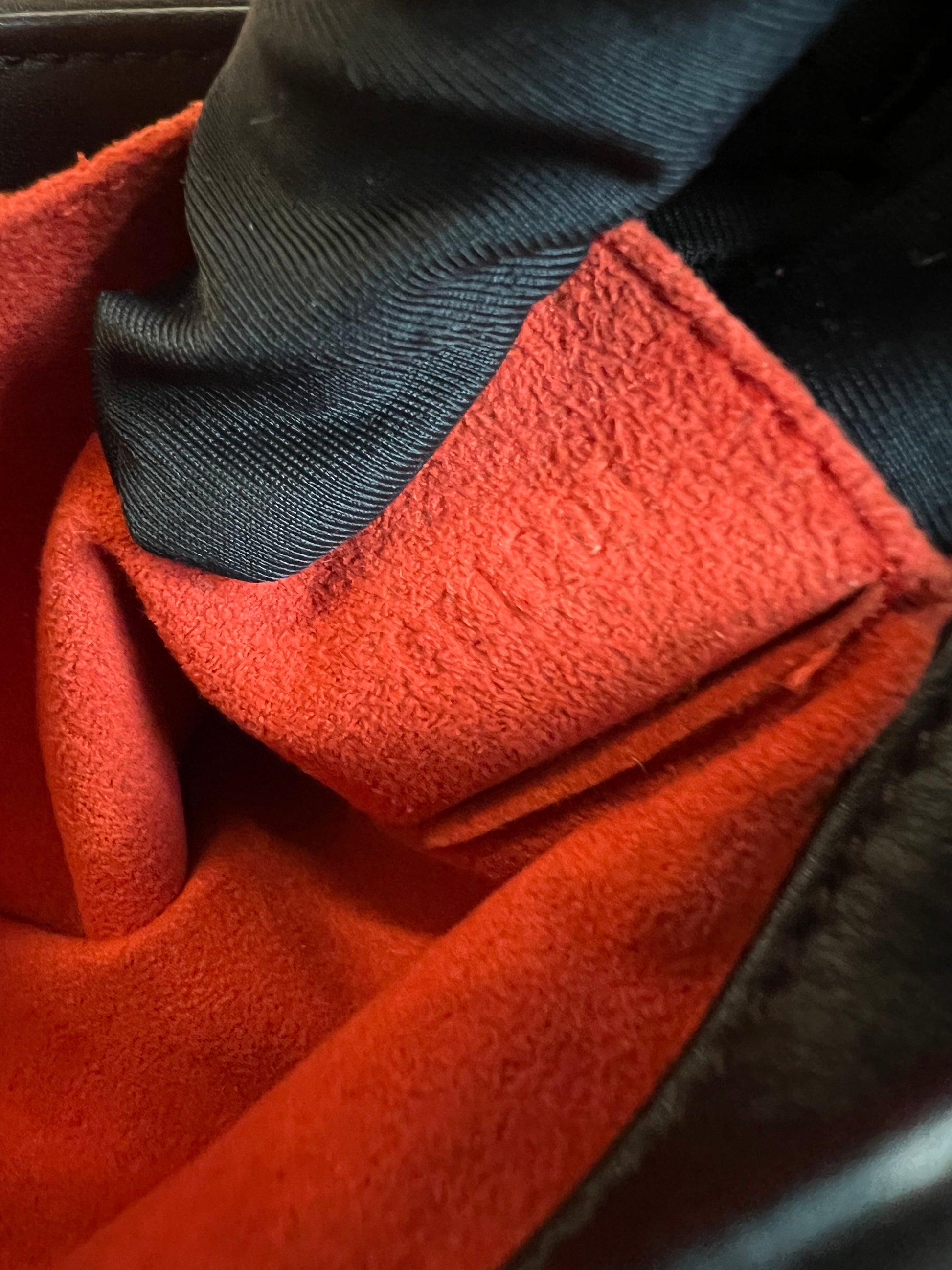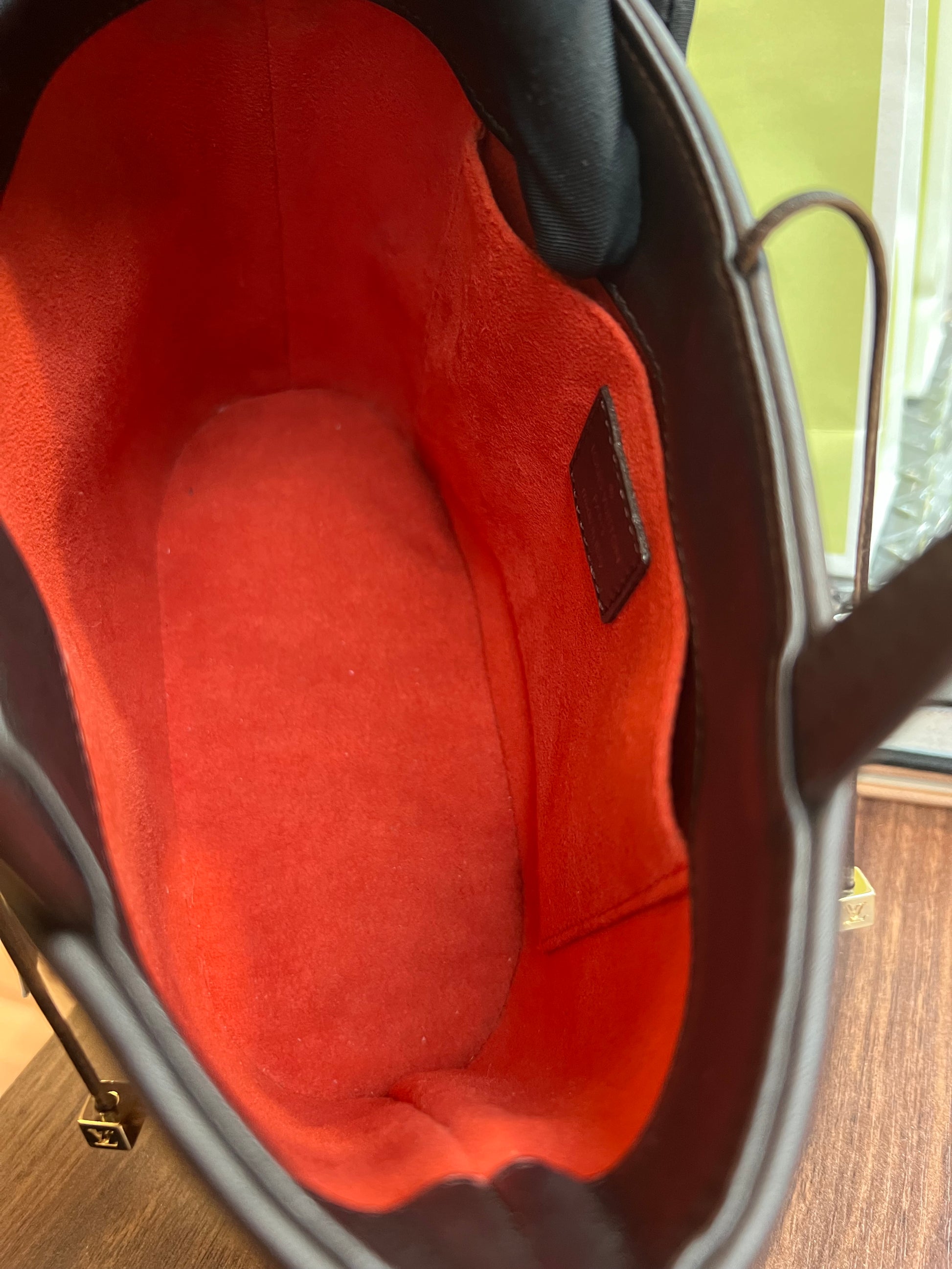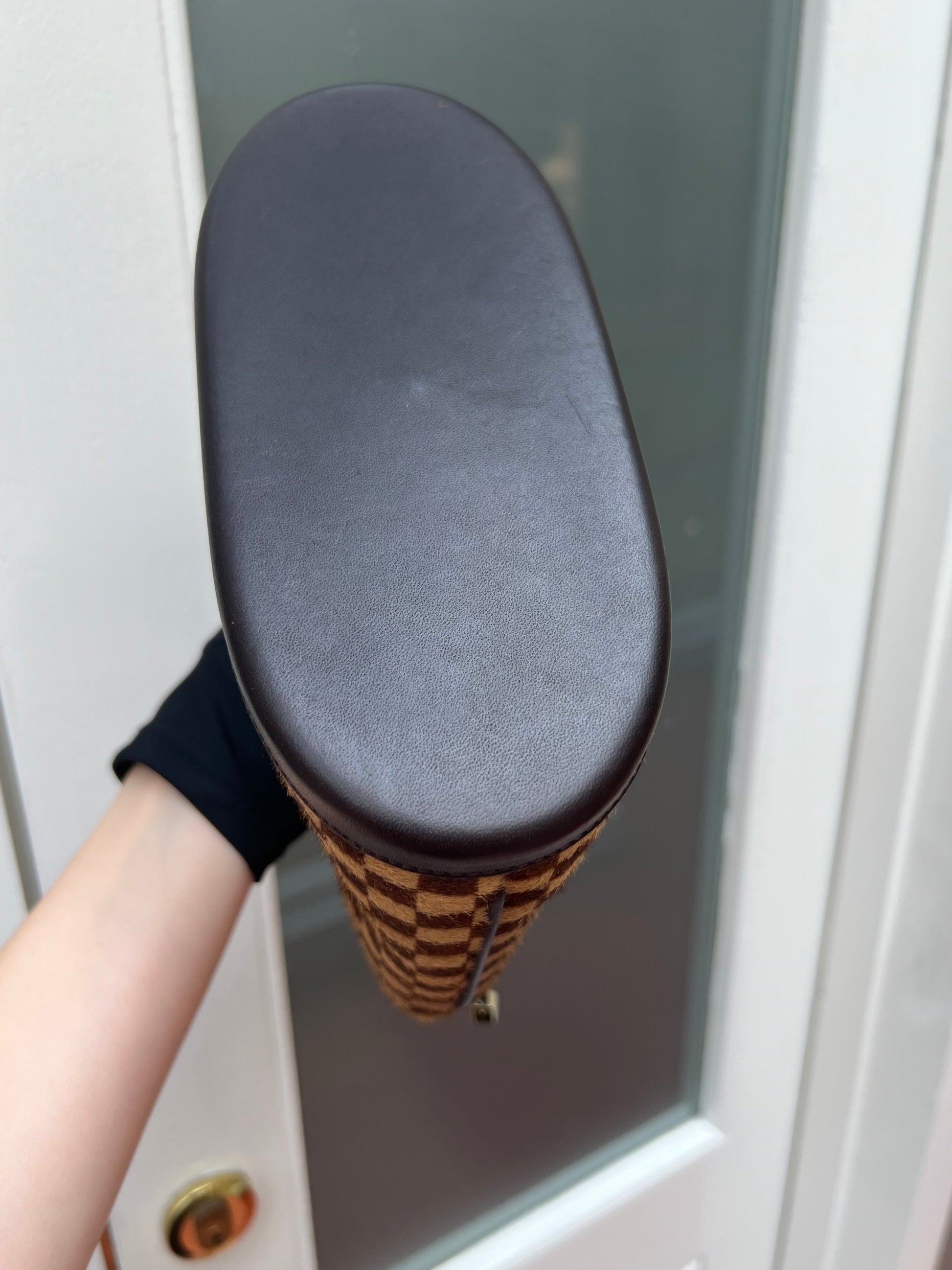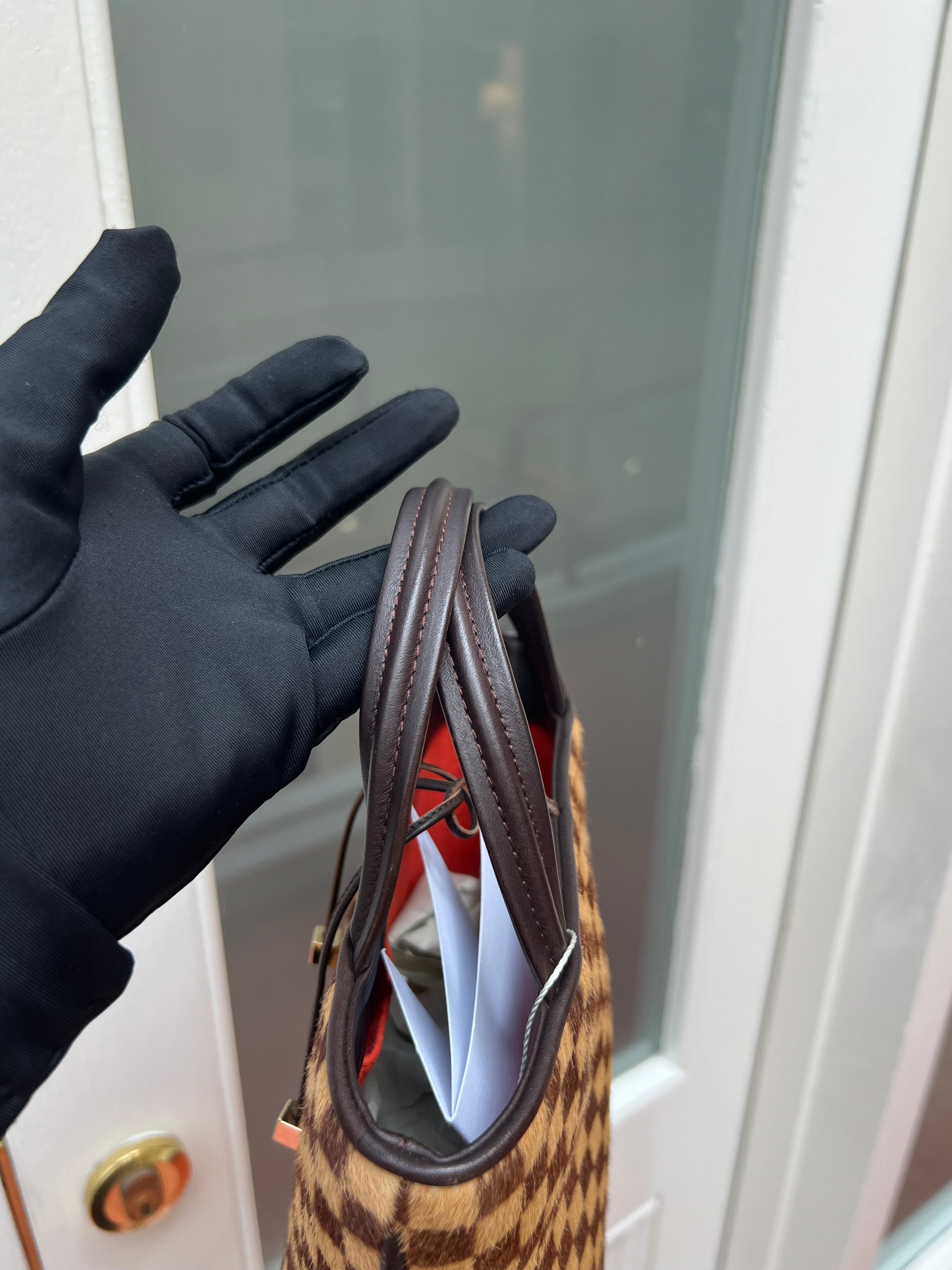 The posh look of this LV Damier Sauvage Impala Pony Hair hand bag cannot be overlooked and is definitely a piece of envy for the non-carrier. The two short leather handles can be held with easy and are neatly placed. The checkered skin of the body is very eye-catchy and the inner lining is alcantra. The inner open pocket is almost invisible.
