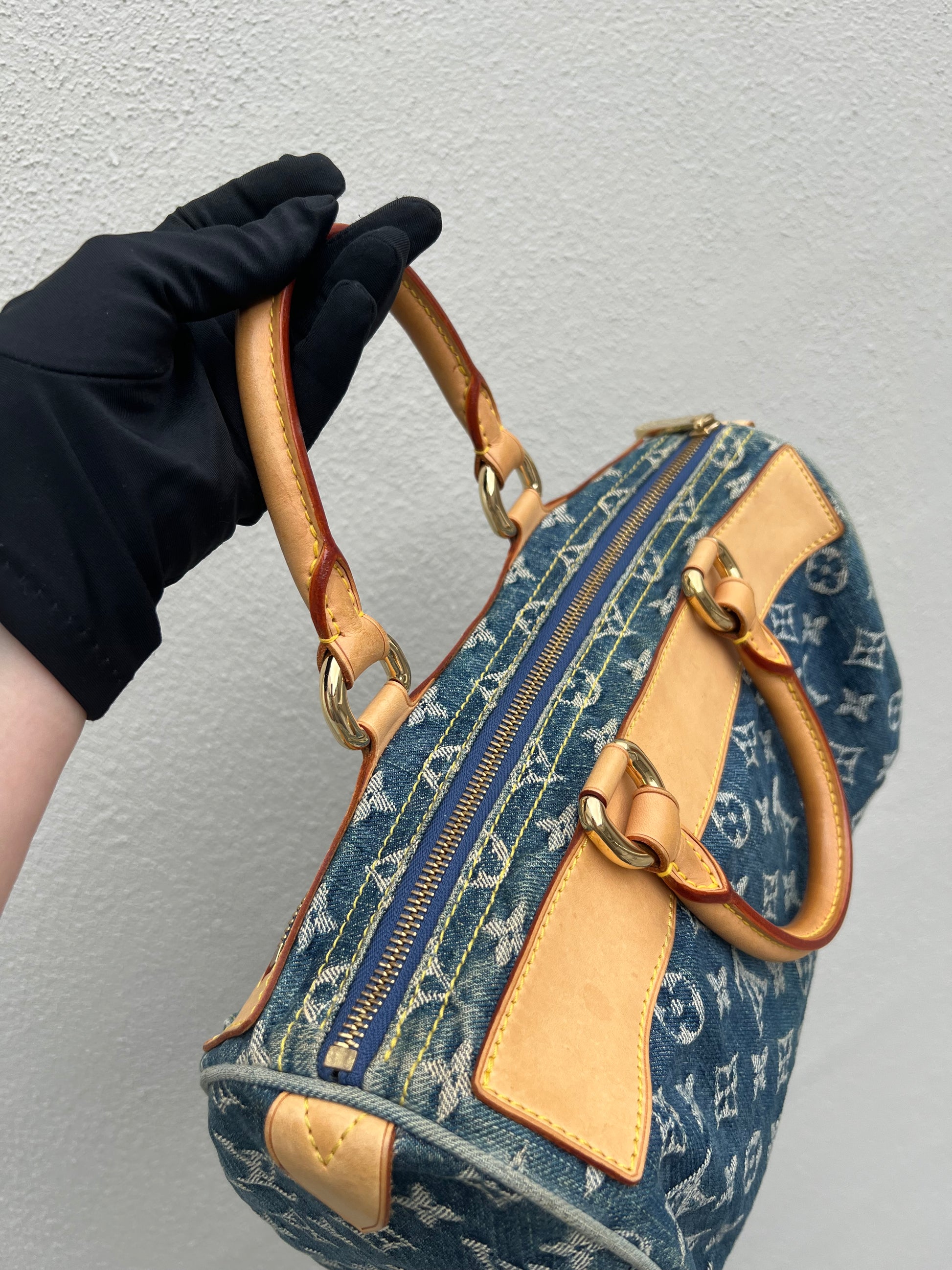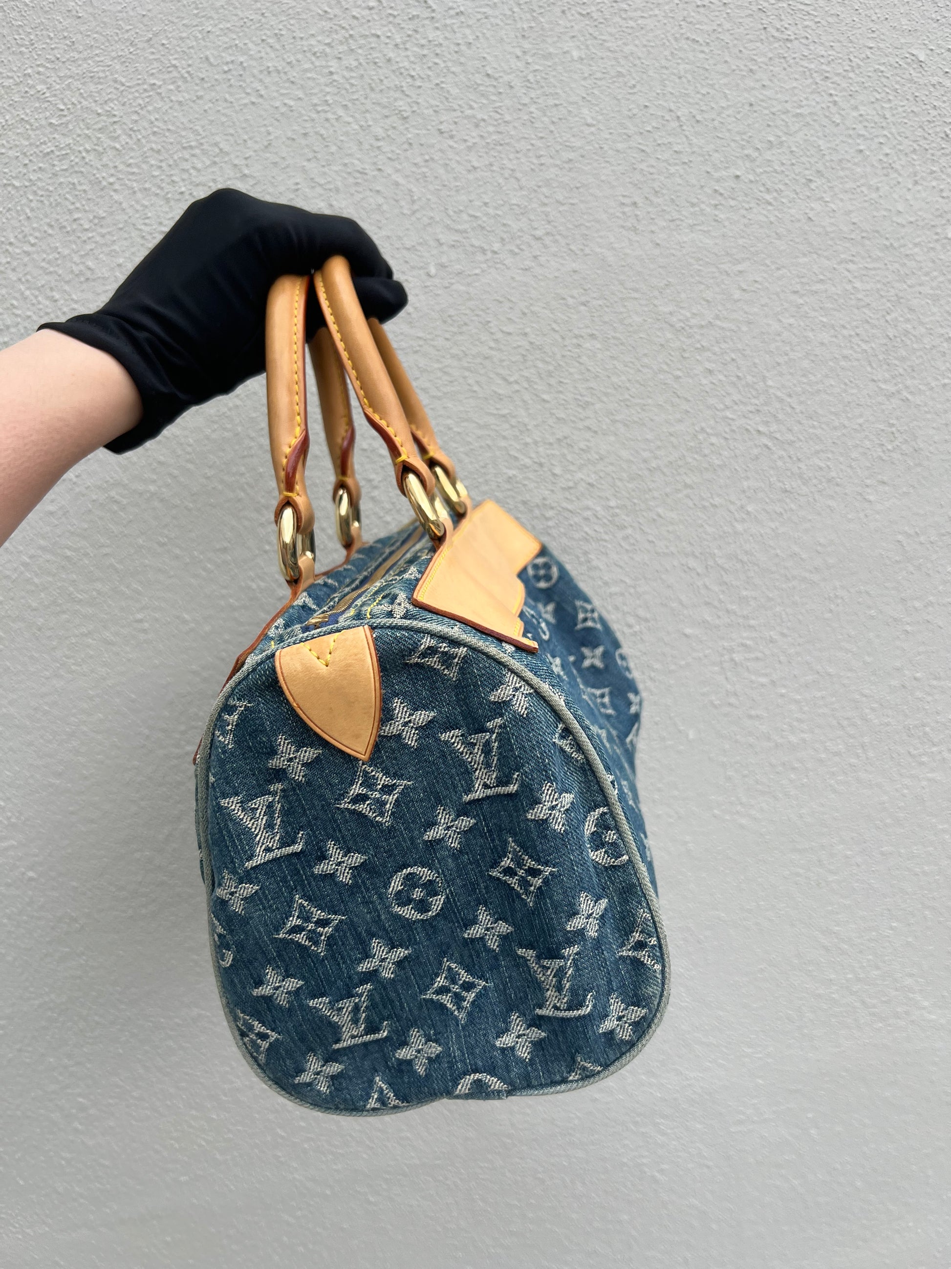 Pre-loved Louis Vuitton Blue Monogram Denim Neo Speedy Handbag 2005