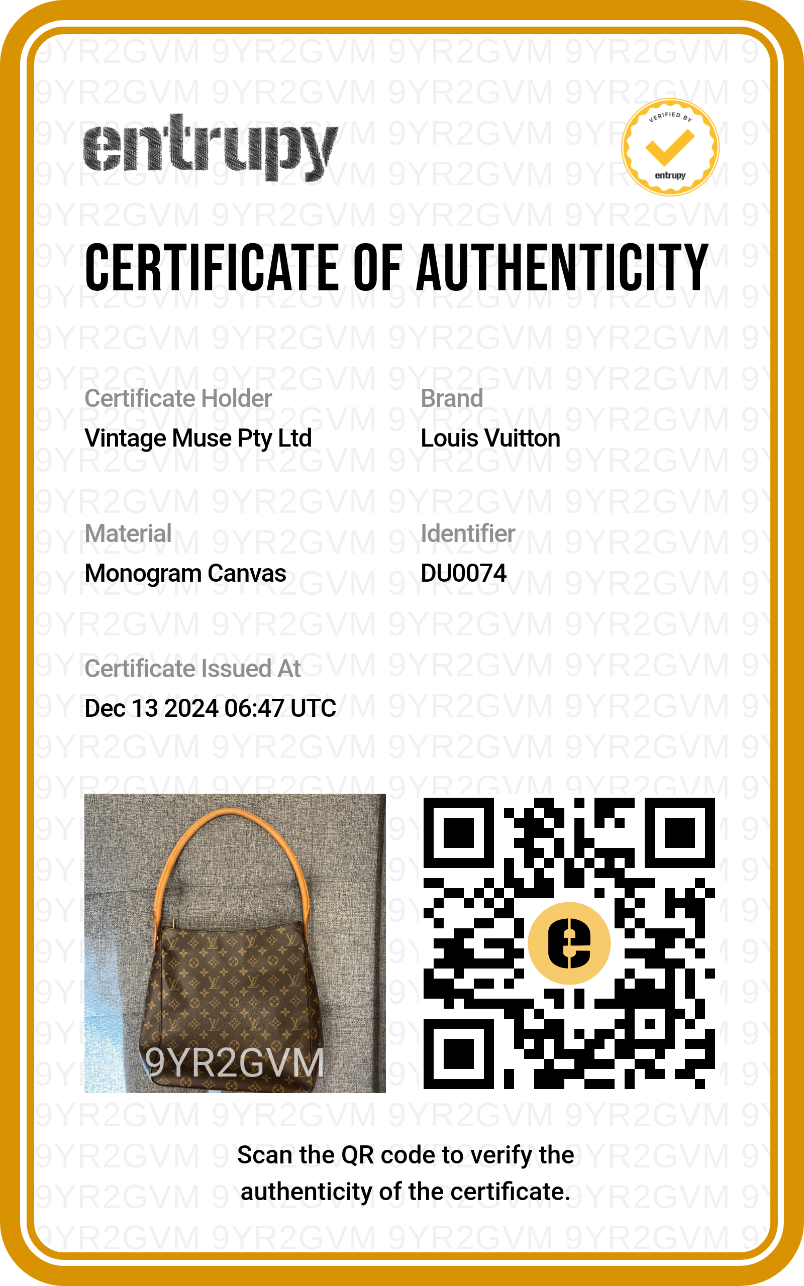 For additional peace of mind and future reference, can also include a Certificate of Authenticity from Entrupy , which is a third-party authentication service. Entrupy is the only technology-based, powered by Al, authentication solution on the market to provide trust to buyers and sellers of luxury handbags.