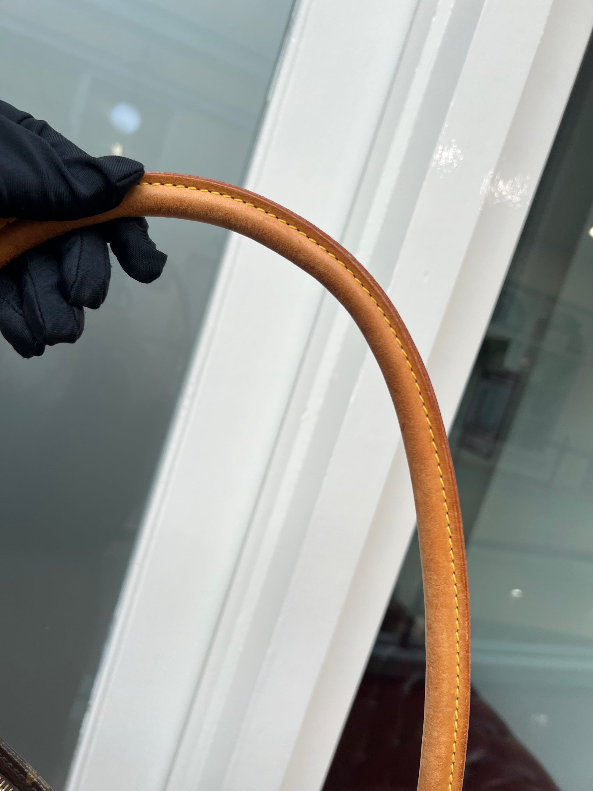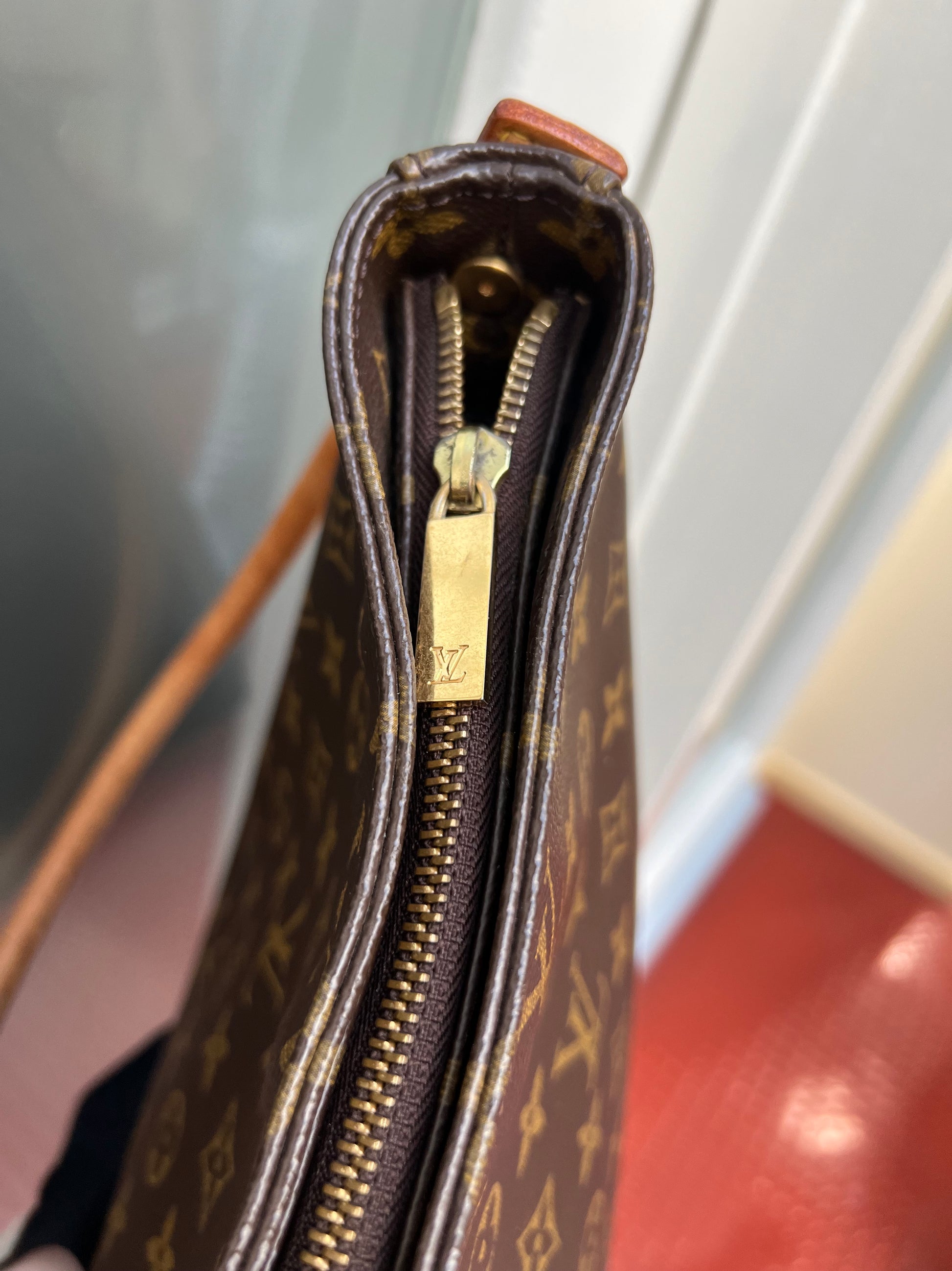 This Louis Vuitton Loop Monogram GM shoulder bag shows slight overall wear, with minor shape distortion due to long-term storage, mild fading along the edges, scratches on the metal parts, and thin stains on the handle. The interior shows pen marks and stains. Despite these details, the bag remains in very good condition. These signs of use add to its authenticity and unique vintage charm, enhance its character, making it a highly cost-effective choice. With ample space to fit a 13-inch laptop, this bag is not only practical for daily use but also a valuable addition to any collection.