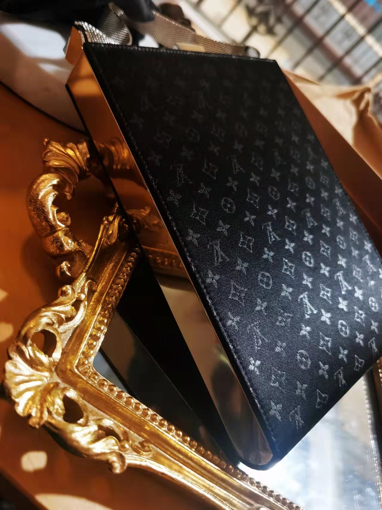 Pre-loved Louis Vuitton Vintage Ange Noir Gm evening handbag in black monogram silk