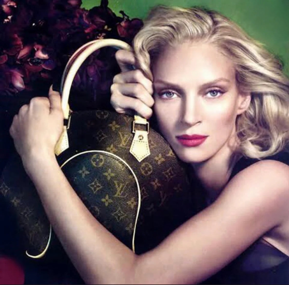 The stunning Uma Thurman showcasing the iconic Ellipse bag in monogram canvas for Louis Vuitton. Shot by Mert Alas and Marcus Piggot.