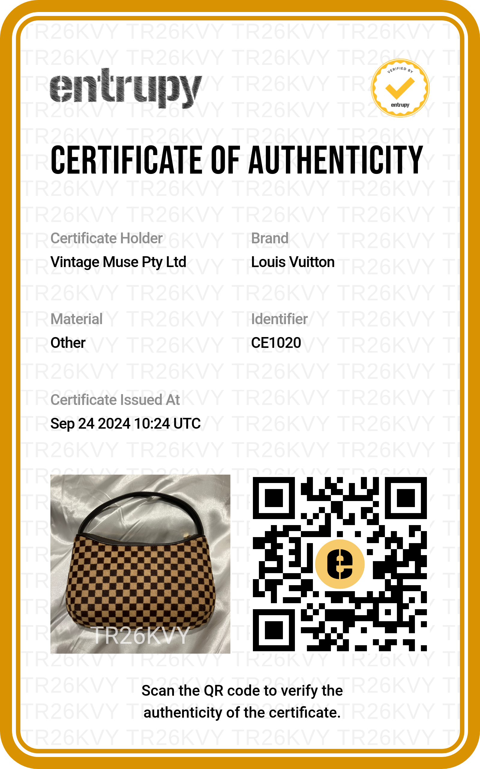 For additional peace of mind and future reference, can also include a Certificate of Authenticity from Entrupy, which is a third-party authentication service. Entrupy is the only technology-based, powered by Al, authentication solution on the market to provide trust to buyers and sellers of luxury handbags.