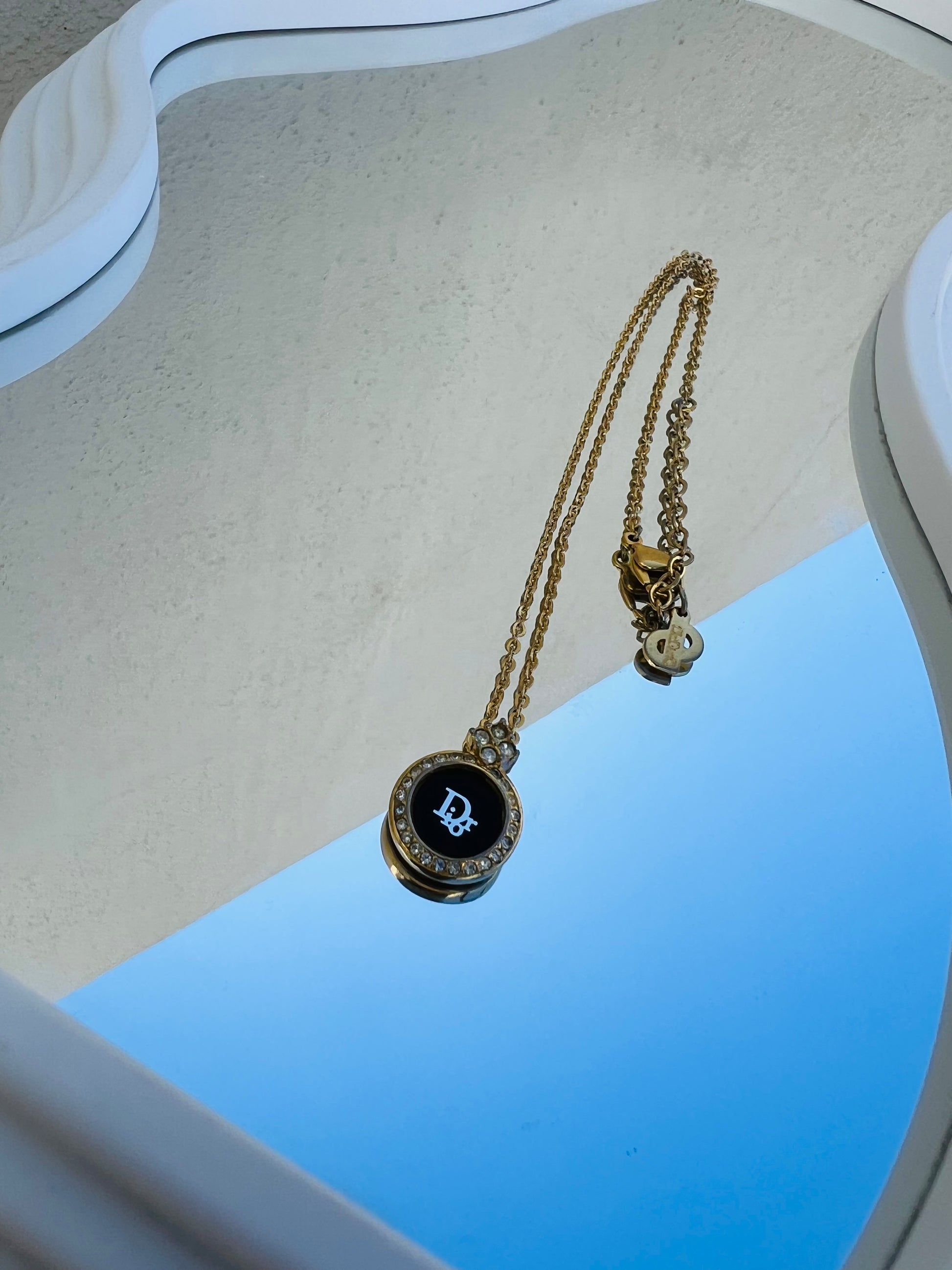 Pre-loved Vintage Christian Dior Black Plate Logo Necklace
