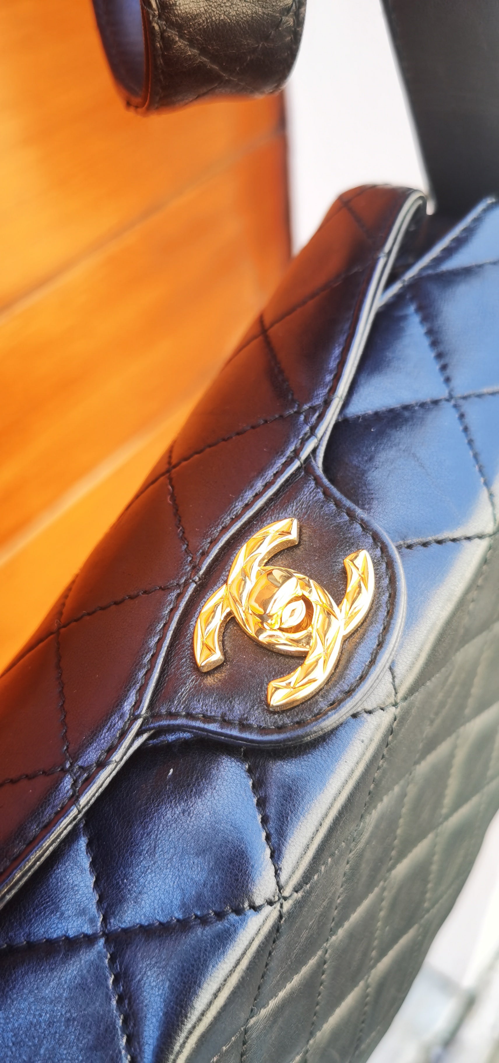 Pre-loved Chanel Vintage CC Diamond-quilted Black Lambskin Crossbody Bag