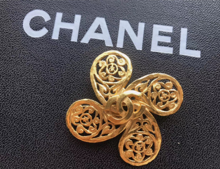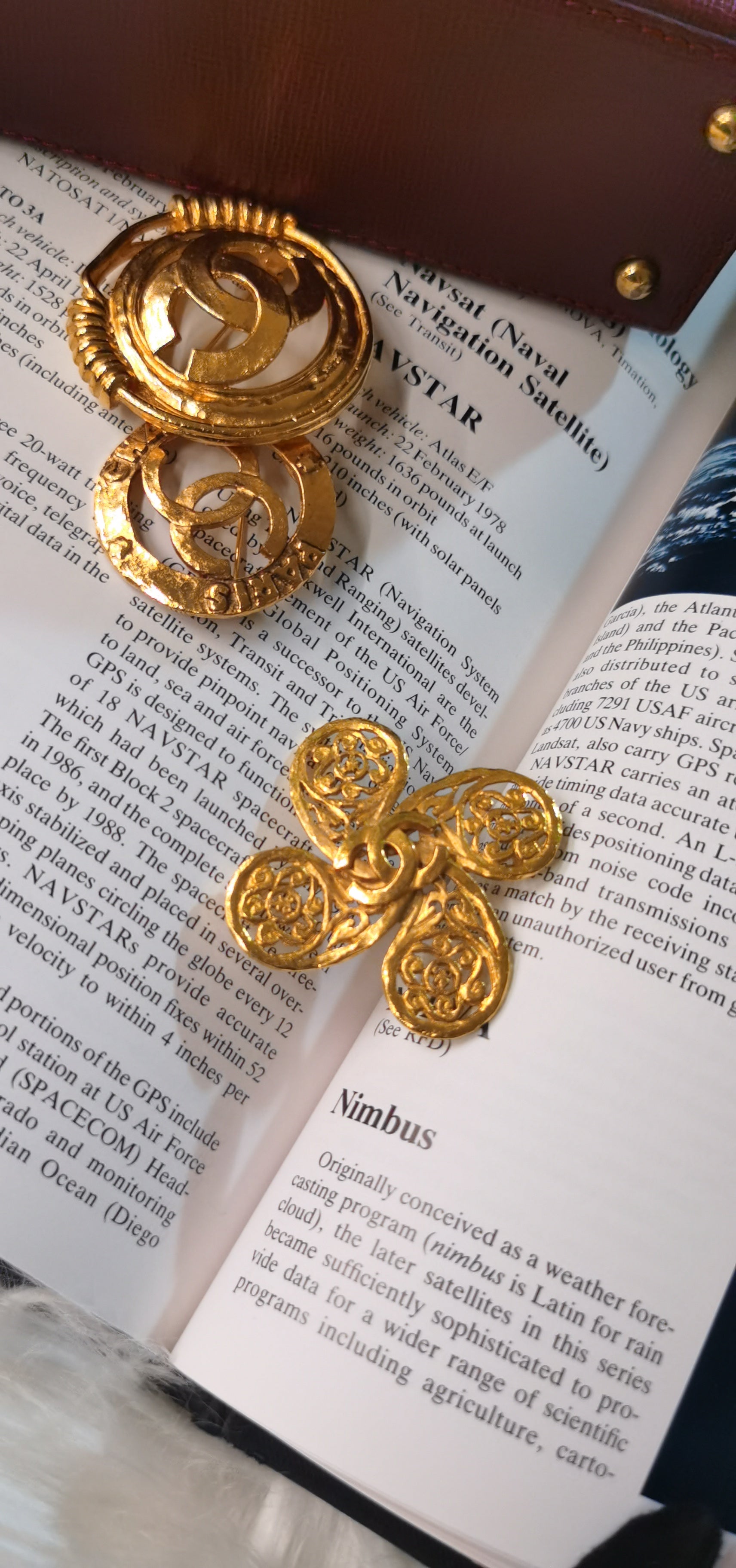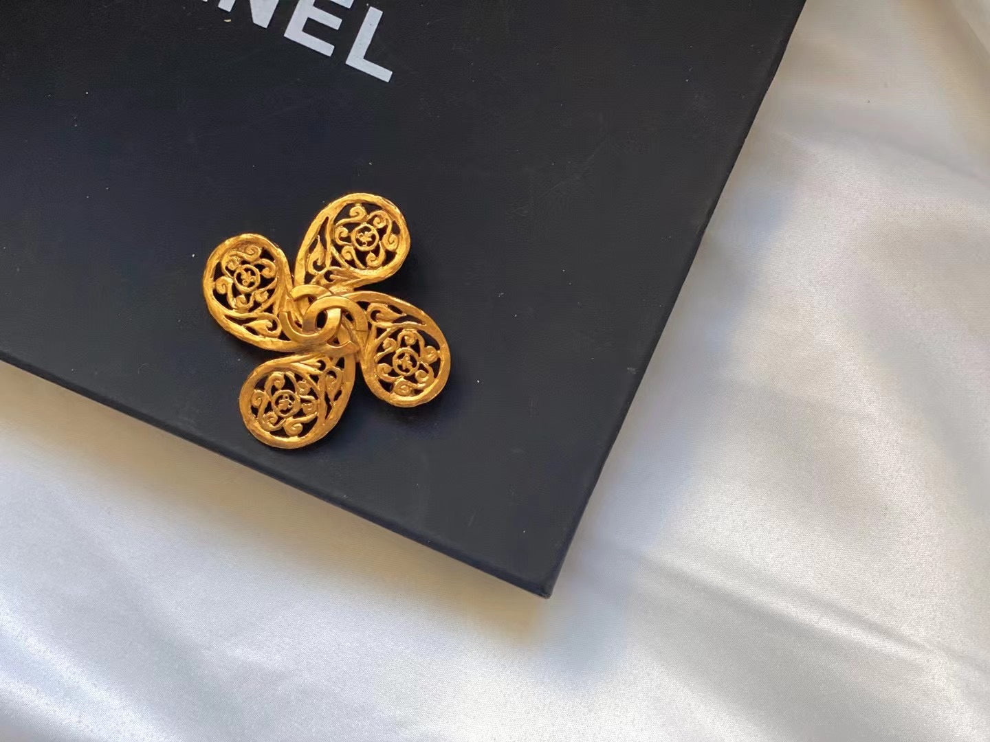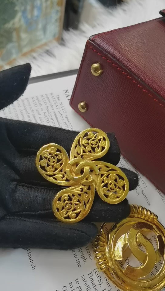 Pre-loved Chanel Vintage 1990s Flower Motif CC Glod Plated Pin and Brooch