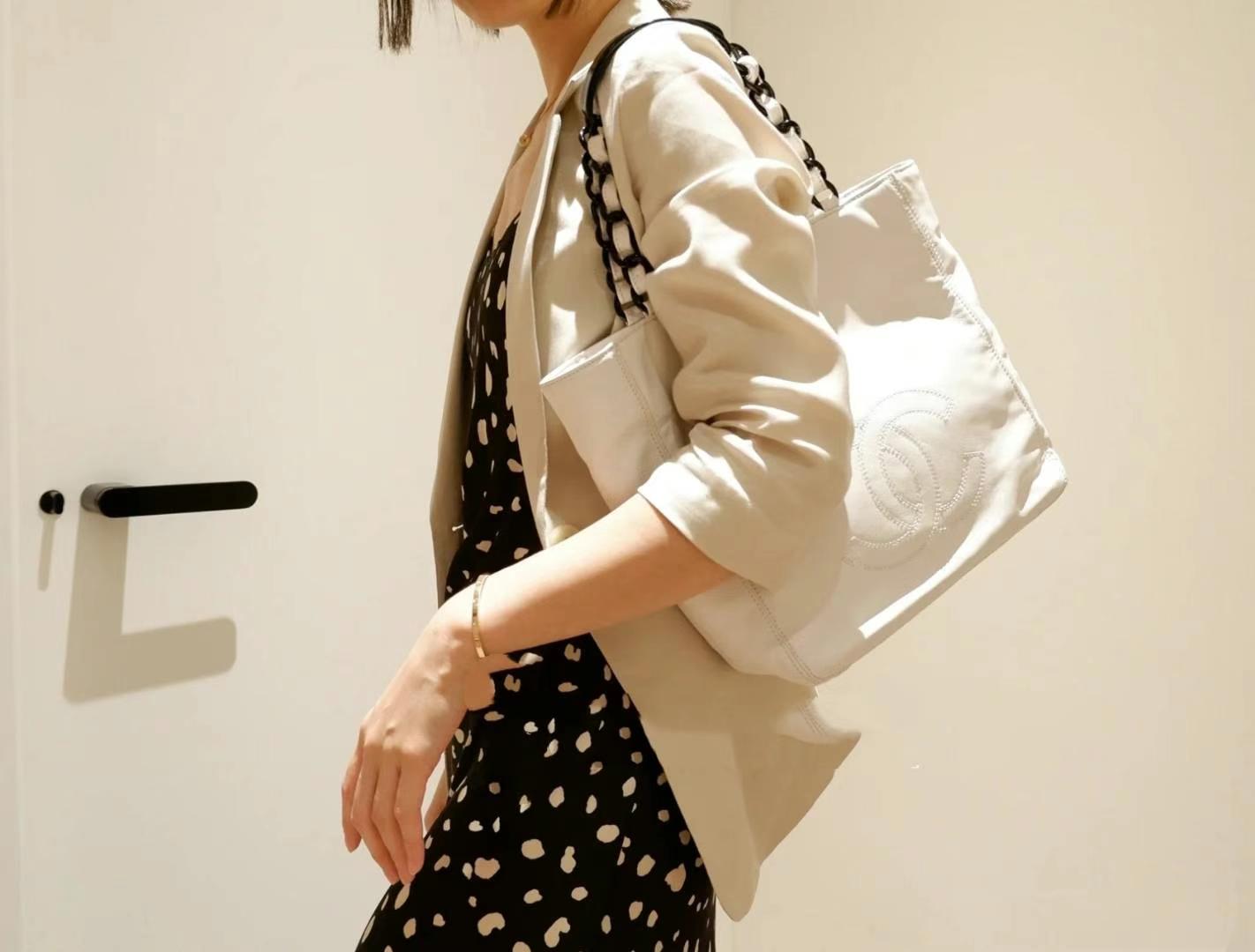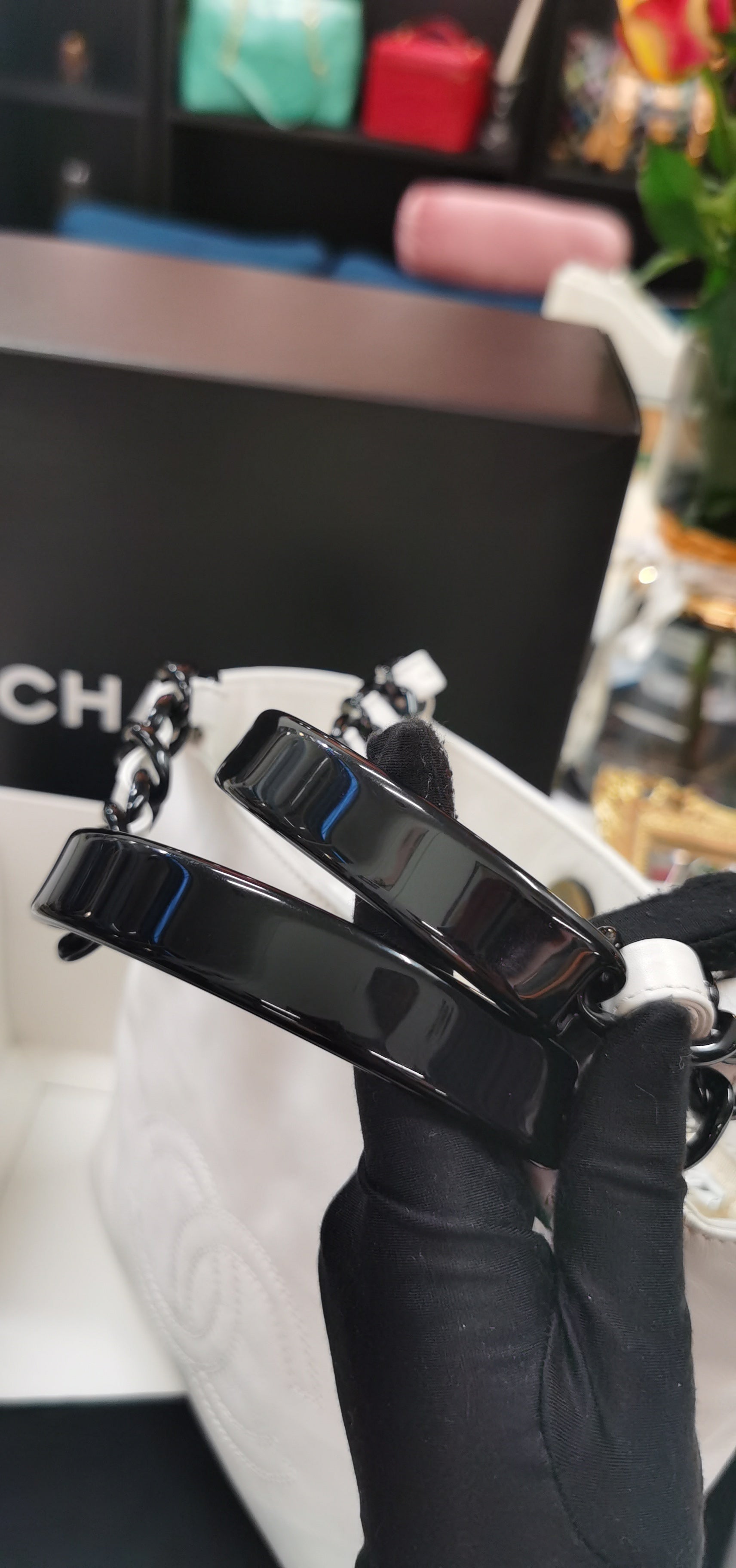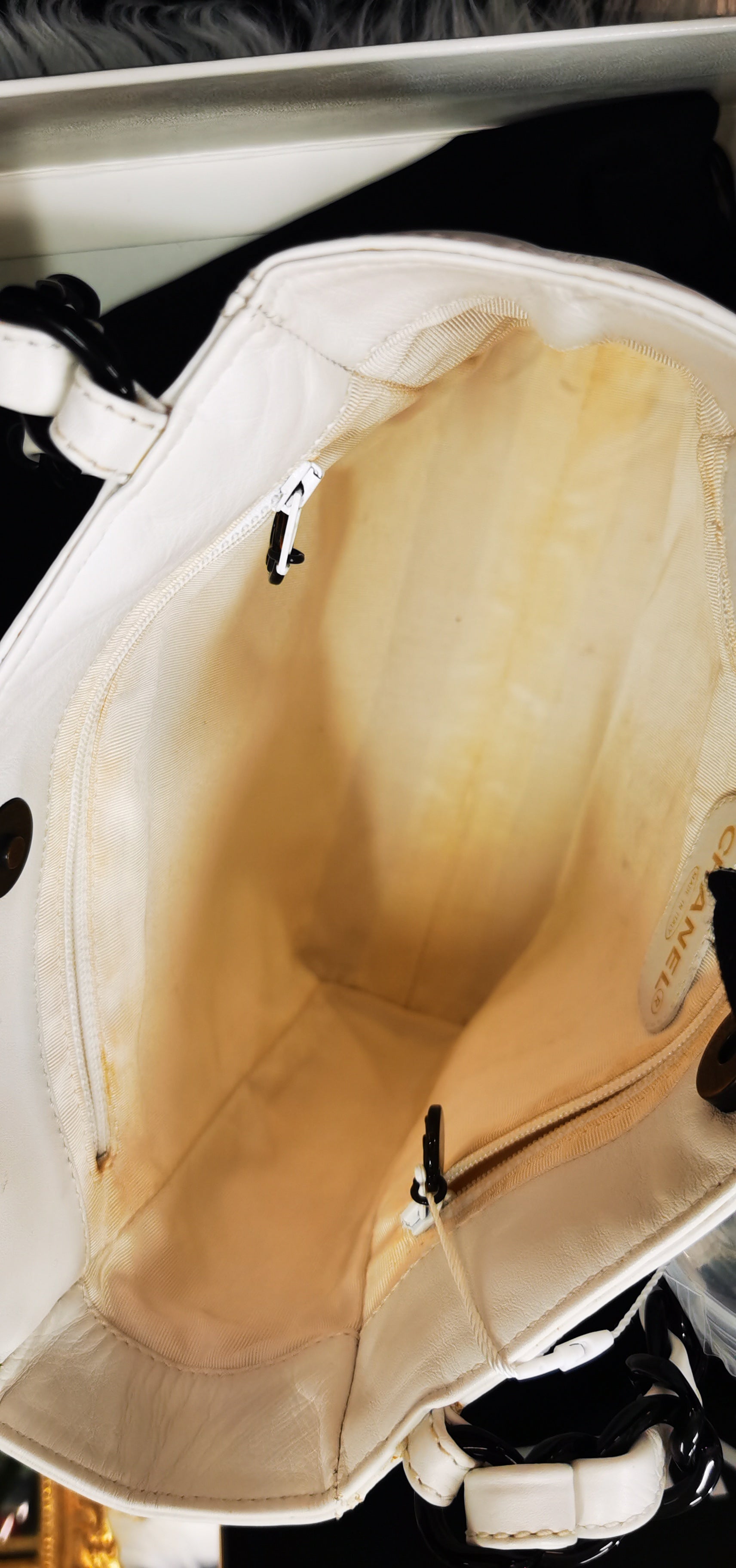 Pre-loved Chanel Vintage White Lambskin Vivian PVC Handle Handbag