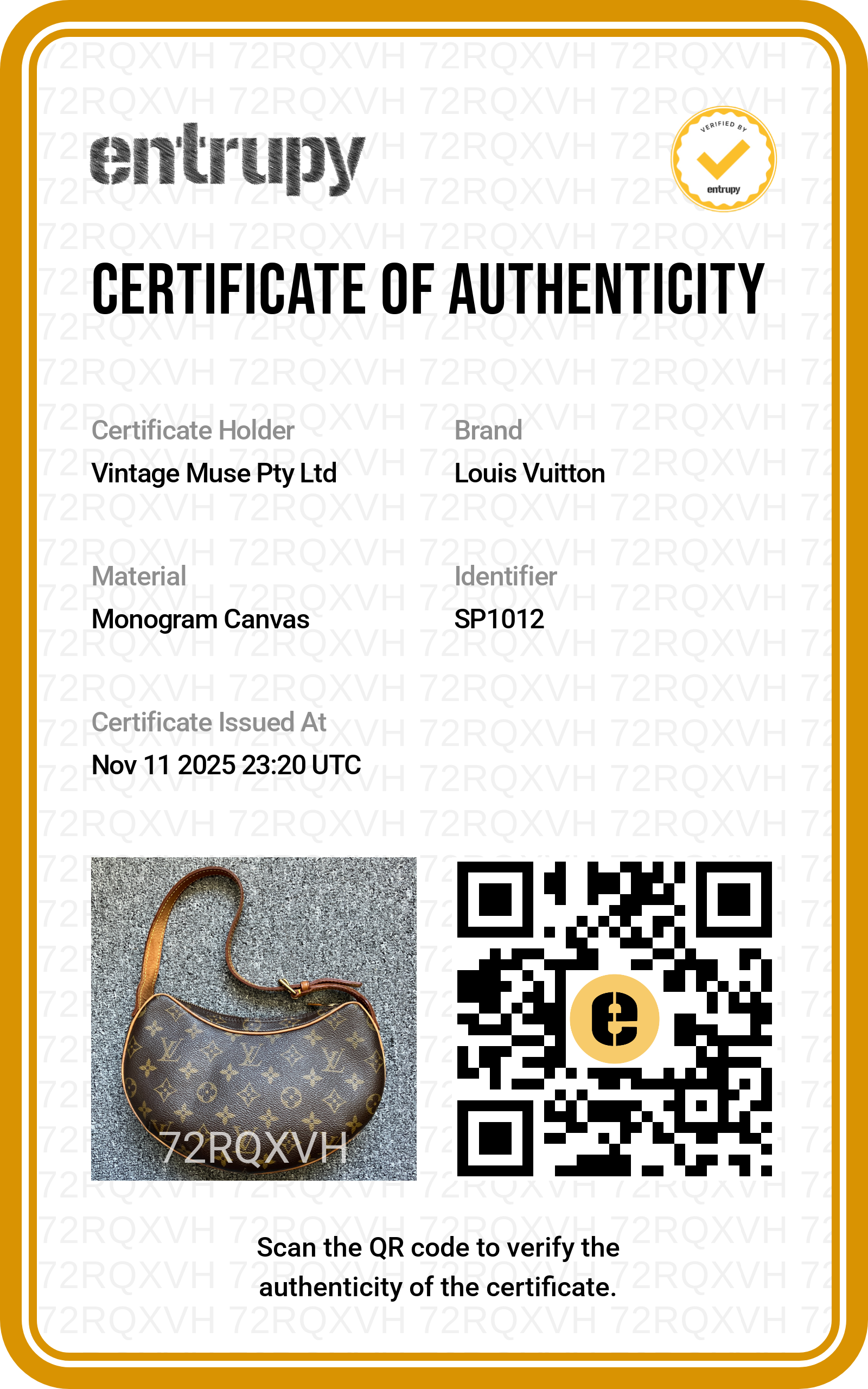 - Entrupy Authentication Certificate