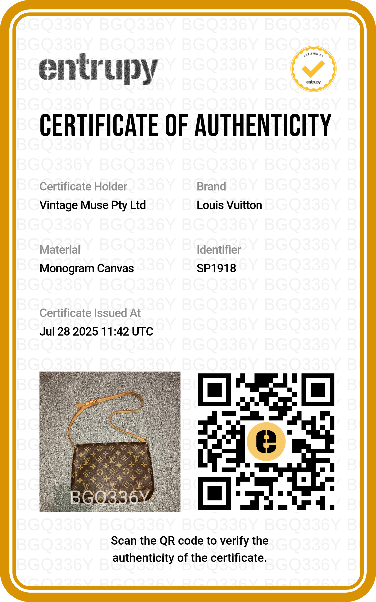 For additional peace of mind and future reference, can also include a Certificate of Authenticity from Entrupy , which is a third-party authentication service. Entrupy is the only technology-based, powered by Al, authentication solution on the market to provide trust to buyers and sellers of luxury handbags.
